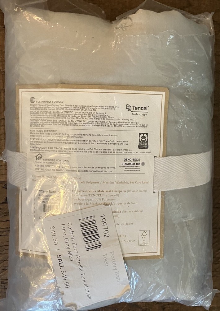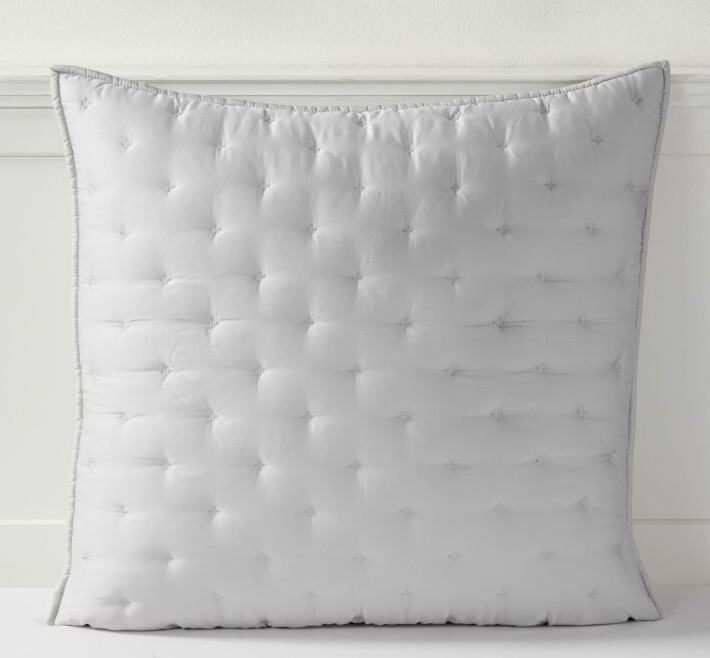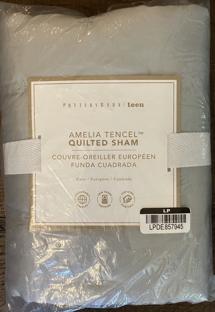 This beautiful handstitched PB Teen Amelia Quilted EURO Sham (Gray Mist color) is woven with sustainably sourced eucalyptus fibers to be supersoft. Made of ultrasoft and breathable 100% Lyocell, which is a natural fiber made from wood pulp. It is 100% bio-degradable, anti-bacterial and has 50% greater moisture absorbency than cotton and offers exceptional comfort and softness. Sham reverses to the same as front. OEKO-TEX® STANDARD 100: tested for 1000+ harmful substances to keep you and your family safe. Machine wash. *stored in smoke free/dog friendly home