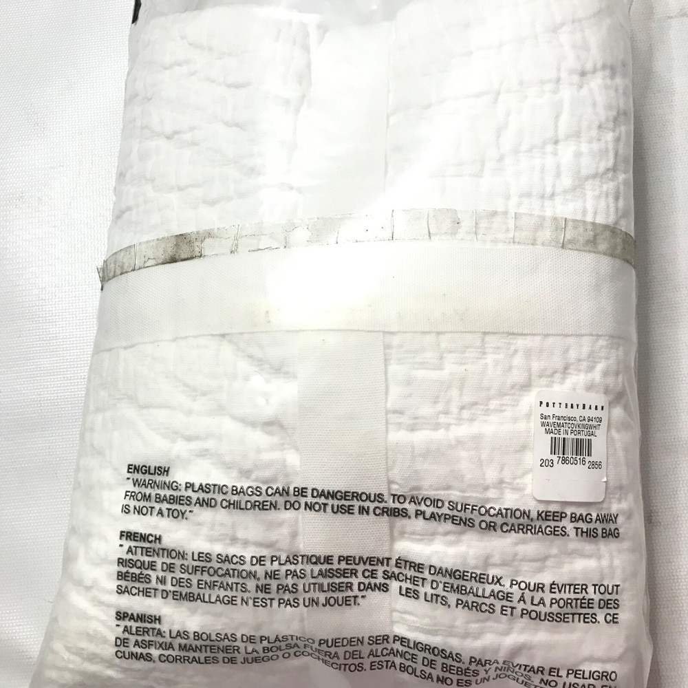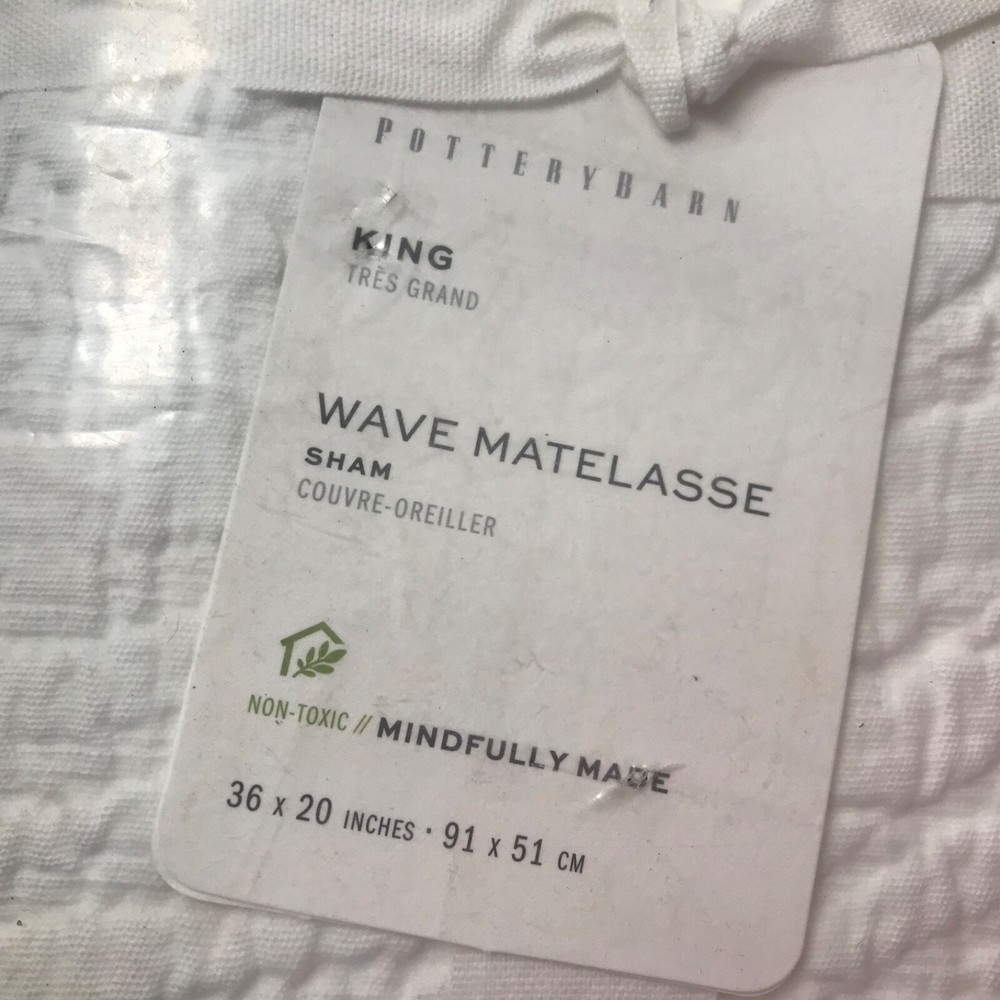 NEW Pottery Barn WAVE Matelasse KING Sham White Cotton Texture 36 x 20” New P3 EPF...