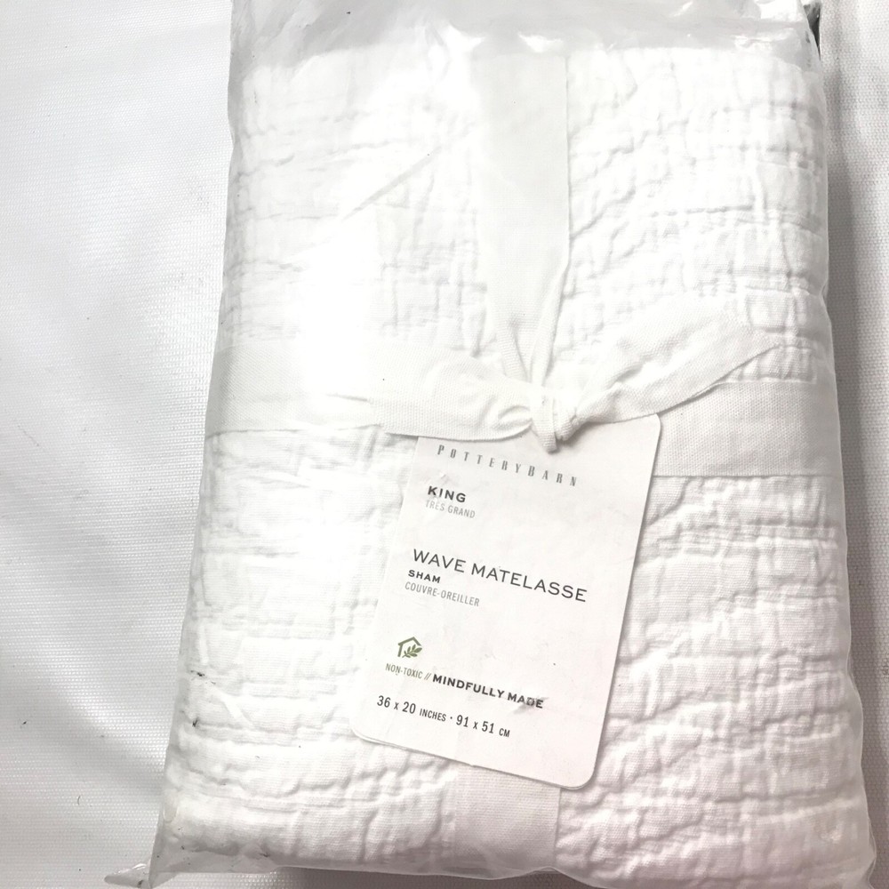 NEW Pottery Barn WAVE Matelasse KING Sham White Cotton Texture 36 x 20” New P3 EPF