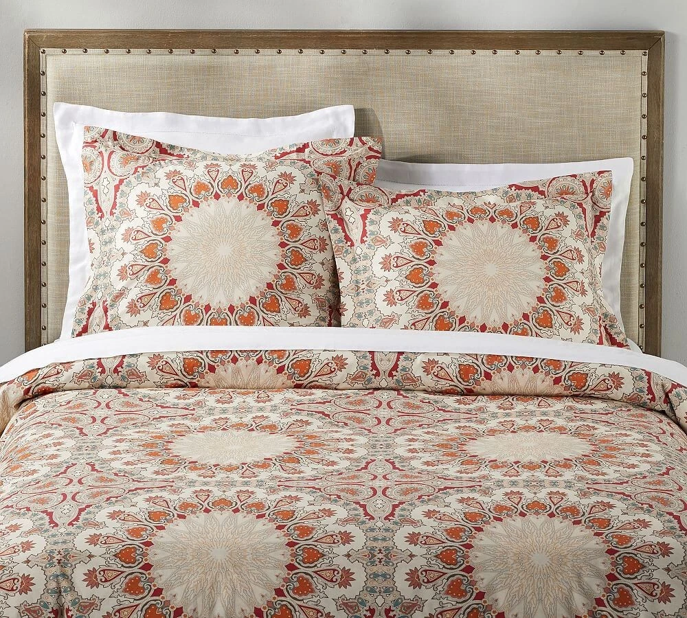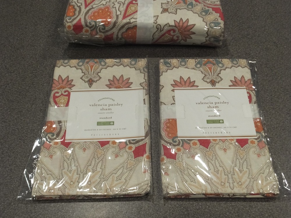 ~~~~~~~~~~~~~~~ Welcome to the Pottery Barn Treasure Trove: I have the widest selection of out of production, discontinued, and hard-to-find quilts and duvets from Pottery Barn, on the web. This is quite possibly your last chance at owning some of these classic/vintage Pottery Barn bedding patterns, in new condition, ever. Don't miss out. Once they are gone, they are gone forever. Get this while you can from a trusted eBay seller! ~~~~~~~~~~~~~~~ P O T T E R Y B A R N Valencia Paisley Medallion 3 PC King Duvet Set ( 2 Standard Shams Included) Listing Details: This listing is for a brand new, still in the original packaging, 3 piece king duvet and shams set from Pottery Barn. This is the Valencia Paisley pattern. All pieces are new. No other items are included in this listing. No inserts are included. If you would like to purchase this king duvet with a different combination of shams, please see my other listings. RARE!!! As of the time of this posting being first listed, there were no other king size duvets in this pattern, in new condition, available on eBay, and it is no longer available from Pottery Barn! This is truly a rare find! Get yours here while it is still available! This may very well be the last chance you have at owning this stunning pattern in new condition - Buy now before it is too late! If you have ever owned a Pottery Barn duvet, you already know how good the quality is! PRICE IS FIRM! King duvet size: 108"x92" Standard sham accommodates an insert size: 20"x26" From Pottery Barn: A silk scarf from the 1860s Victorian era is re-imagined in vibrant hues with a contemporary look to create our Duvet Cover’s lush, intricate design. Woven of soft cotton, this bedding is a favorite on warmer nights. Made of 100% organic cotton. Organic cotton is grown without the use of toxic and persistent pesticides and synthetic fertilizers. GOTS certified. To learn more about our environmental commitment click here. Duvet features a button closure and interior ties to help keep insert (sold separately) in place; sham features an envelope closure. 200-thread count. 2 inch flange on shams CARE AND MAINTENANCE Machine wash cold, inside out; gentle cycle.. Use only non-chlorine bleach if needed. Tumble dry low; remove promptly. Warm iron as needed.. DISCLAIMERS (IMPORTANT): All of the items I sell come from a clean, smoke-free, pet-free home, for those of you that might have allergies. All items are authentic. None of my items are outlet items unless specifically stated. I am not affiliated with Pottery Barn in any way. My pictures are of the exact product I am selling. The condition you see the item in the picture, is the condition you will receive the item. If the resolution of the picture is not sufficient for you to make your buying decision, please feel free to contact me for more photos or for more information. I do my best to provide accurate descriptions for all items.This is an AS IS listing. Please email questions BEFORE buying as ALL SALES ARE FINAL. In the event of a fulfillment error made on my part (i.e. wrong item sent), I will pay to have you ship the item back and will send out the correct item. I do not guarantee manufacturer's quality for unopened items (I will not remove an item from original manufacturer's packaging). I do not warranty color. Cameras & computer screens do crazy things w/colors. Because I will not allow returns if you are not satisfied with how the color looks under your specific kind of lighting. Do not think to abuse the eBay resolution process, stating you received the incorrect item if you did not indeed receive the wrong item. As part of the resolution process, you WILL HAVE TO fully and clearly document and demonstrate (w/pictures & full explanation) how the product you received was not what was listed. Any frivolous use of the dispute/return process to try to return an item will be immediately reported to eBay. Despite all of the above listed disclaimers, I am a reasonable person. Unfortunately, there is a small percentage of eBay users out there that wish only to scam, waste sellers' time, and otherwise disrupt the great buying/selling resource the eBay is. Should you purchase an item and you are not satisfied with it, please email me directly, at the email listed in the PayPal payment receipt, to discuss the possibility of a return. If I grant a return authorization, it will always be under these terms: 1) you will need to pay return shipping, 2) The item must be returned in the EXACT SAME CONDITION that it was shipped 3) initial shipping fees are not refundable & 4) the refund will be equal to the purchase price, less shipping, & less a 25% restocking fee. If any of these conditions are not met, the item will be returned to you and the refund forfeited. Expensive or rare items will be shipped out with a signature service. This is a protection to both you, the buyer, and me, the seller. Also, if you have a low, or zero feedback rating, an adult signature will also be required. Should any damage of an item be incurred during shipping, it is the responsibility of the buyer to document the damage with clear picture for me to file a claim within 48 hours of receipt. Failure to provide ANY needed information will void the shipping insurance, at the buyer's risk. Document the damage with photos (pictures of exterior of the box where damaged, and pictures of broken item). Email me these pictures, along with a description of the damages. Shipping to continental US only, unless prior authorization has been made before checkout. Check out my other auctions! Thanks.