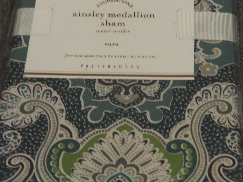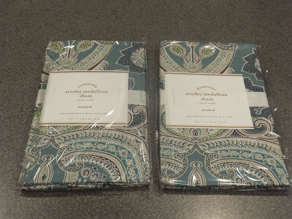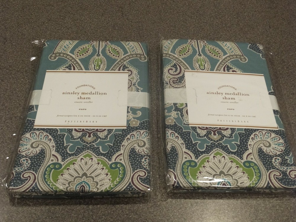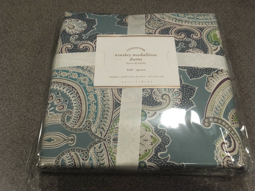 ~~~~~~~~~~~~~~~ Welcome to the Pottery Barn Treasure Trove: I have the widest selection of out of production, discontinued, and hard-to-find quilts and duvets from Pottery Barn, on the web. This is quite possibly your last chance at owning some of these classic/vintage Pottery Barn bedding patterns, in new condition, ever. Don't miss out. Once they are gone, they are gone forever. Get this while you can from a trusted eBay seller! ~~~~~~~~~~~~~~~ P O T T E R Y B A R N 5PC Ainsley Paisley Medallion Queen Duvet Set - Blue/Multi (includes 2 Standard and 2 Euro Shams) Listing Details: This listing is for a brand new, still in the original packaging, 5 piece queen duvet set from Pottery Barn. Included in the set is the duvet, 2 euro and 2 standard shams. This is the Blue/Multi variety of this pattern, that was offered by Pottery Barn. Pottery Barn also offered it in a Red/Multi and Yellow/Multi variety (neither are part of this listing). No inserts are included. All are new, in the original ribbons and unopened packaging. This is an absolutely stunning pattern! Google the name of the duvet pattern to see Pottery Barn's stock photo of this set. Or email me, and I can send them, or a link to them on the web. As of the time that this listing was created, there were no others in this pattern and size combination, complete with shams, all in new condition, available on eBay. Get it here now, while it is still available. Once this sells, you may never have the chance at owning such a stunning set again. If you have ever owned a Pottery Barn quilt, you already know how good the quality is! 1x Queen duvet size: 88"x92" 2x Standard sham size: 20"x26" 3x Euro sham size: 26"x26" ------------------------------- DISCLAIMERS (IMPORTANT): All of the items I sell come from a clean, smoke-free, pet-free home, for those of you that might have allergies. All items are authentic. None of my items are outlet items unless specifically stated. I am not affiliated with Pottery Barn in any way. My pictures are of the exact product I am selling. The condition you see the item in the picture, is the condition you will receive the item. If the resolution of the picture is not sufficient for you to make your buying decision, please feel free to contact me for more photos or for more information. I do my best to provide accurate descriptions for all items.This is an AS IS listing. Please email questions BEFORE buying as ALL SALES ARE FINAL. In the event of a fulfillment error made on my part (i.e. wrong item sent), I will pay to have you ship the item back and will send out the correct item. I do not guarantee manufacturer's quality for unopened items (I will not remove an item from original manufacturer's packaging). I do not warranty color. Cameras & computer screens do crazy things w/colors. Because I will not allow returns if you are not satisfied with how the color looks under your specific kind of lighting. Do not think to abuse the eBay resolution process, stating you received the incorrect item if you did not indeed receive the wrong item. As part of the resolution process, you WILL HAVE TO fully and clearly document and demonstrate (w/pictures & full explanation) how the product you received was not what was listed. Any frivolous use of the dispute/return process to try to return an item will be immediately reported to eBay. Despite all of the above listed disclaimers, I am a reasonable person. Unfortunately, there is a small percentage of eBay users out there that wish only to scam, waste sellers' time, and otherwise disrupt the great buying/selling resource the eBay is. Should you purchase an item and you are not satisfied with it, please email me directly, at the email listed in the PayPal payment receipt, to discuss the possibility of a return. If I grant a return authorization, it will always be under these terms: 1) you will need to pay return shipping, 2) The item must be returned in the EXACT SAME CONDITION that it was shipped 3) initial shipping fees are not refundable & 4) the refund will be equal to the purchase price, less shipping, & less a 25% restocking fee. If any of these conditions are not met, the item will be returned to you and the refund forfeited. Expensive or rare items will be shipped out with a signature service. This is a protection to both you, the buyer, and me, the seller. Also, if you have a low, or zero feedback rating, an adult signature will also be required. Should any damage of an item be incurred during shipping, it is the responsibility of the buyer to document the damage with clear picture for me to file a claim within 48 hours of receipt. Failure to provide ANY needed information will void the shipping insurance, at the buyer's risk. Document the damage with photos (pictures of exterior of the box where damaged, and pictures of broken item). Email me these pictures, along with a description of the damages. Shipping to continental US only, unless prior authorization has been made before checkout. Check out my other auctions! Thanks.