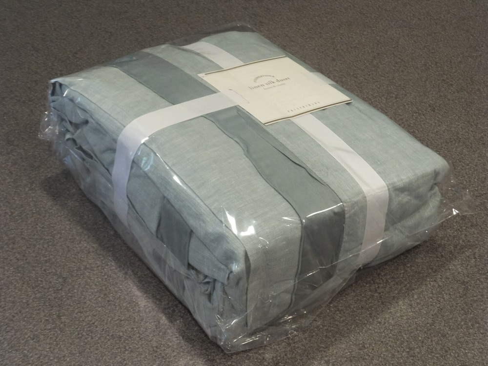 ~~~~~~~~~~~~~~~ Welcome to the Pottery Barn Treasure Trove: I have the widest selection of out of production, discontinued, and hard-to-find quilts and duvets from Pottery Barn, on the web. This is quite possibly your last chance at owning some of these classic/vintage Pottery Barn bedding patterns, in new condition, ever. Don't miss out. Once they are gone, they are gone forever. Get this while you can from a trusted eBay seller! ~~~~~~~~~~~~~~~ P O T T E R Y B A R N New 5PC Pottery Barn Linen with Silk Trim (Porcelain Blue) Queen Duvet Set Listing Details: This listing is for a new 5 piece duvet and shams set from Pottery Barn. This is the Linen with Silk Trim pattern, in the Porcelain Blue color. It was also offered in several other colors - some of which I have as well (check out my other listings). Just the queen duvet, 2 euro and 2 standard shams are included in this set. No inserts are included. This is a discontinued style, no longer available directly from Pottery Barn. This is absolutely BEAUTIFUL! Queen Duvet Size: 88" x 92" Standard Shams Size: 20" x 26" Euro Shams Size: 26" x 26" DISCLAIMERS (IMPORTANT): All of the items I sell come from a clean, smoke-free, pet-free home, for those of you that might have allergies. All items are authentic. None of my items are outlet items unless specifically stated. I am not affiliated with Pottery Barn in any way. My pictures are of the exact product I am selling. The condition you see the item in the picture, is the condition you will receive the item. If the resolution of the picture is not sufficient for you to make your buying decision, please feel free to contact me for more photos or for more information. I do my best to provide accurate descriptions for all items.This is an AS IS listing. Please email questions BEFORE buying as ALL SALES ARE FINAL. In the event of a fulfillment error made on my part (i.e. wrong item sent), I will pay to have you ship the item back and will send out the correct item. I do not guarantee manufacturer's quality for unopened items (I will not remove an item from original manufacturer's packaging). I do not warranty color. Cameras & computer screens do crazy things w/colors. Because I will not allow returns if you are not satisfied with how the color looks under your specific kind of lighting. Do not think to abuse the eBay resolution process, stating you received the incorrect item if you did not indeed receive the wrong item. As part of the resolution process, you WILL HAVE TO fully and clearly document and demonstrate (w/pictures & full explanation) how the product you received was not what was listed. Any frivolous use of the dispute/return process to try to return an item will be immediately reported to eBay. Despite all of the above listed disclaimers, I am a reasonable person. Unfortunately, there is a small percentage of eBay users out there that wish only to scam, waste sellers' time, and otherwise disrupt the great buying/selling resource the eBay is. Should you purchase an item and you are not satisfied with it, please email me directly, at the email listed in the PayPal payment receipt, to discuss the possibility of a return. If I grant a return authorization, it will always be under these terms: 1) you will need to pay return shipping, 2) The item must be returned in the EXACT SAME CONDITION that it was shipped 3) initial shipping fees are not refundable & 4) the refund will be equal to the purchase price, less shipping, & less a 25% restocking fee. If any of these conditions are not met, the item will be returned to you and the refund forfeited. Expensive or rare items will be shipped out with a signature service. This is a protection to both you, the buyer, and me, the seller. Also, if you have a low, or zero feedback rating, an adult signature will also be required. Should any damage of an item be incurred during shipping, it is the responsibility of the buyer to document the damage with clear picture for me to file a claim within 48 hours of receipt. Failure to provide ANY needed information will void the shipping insurance, at the buyer's risk. Document the damage with photos (pictures of exterior of the box where damaged, and pictures of broken item). Email me these pictures, along with a description of the damages. Shipping to continental US only, unless prior authorization has been made before checkout. Check out my other auctions! Thanks.