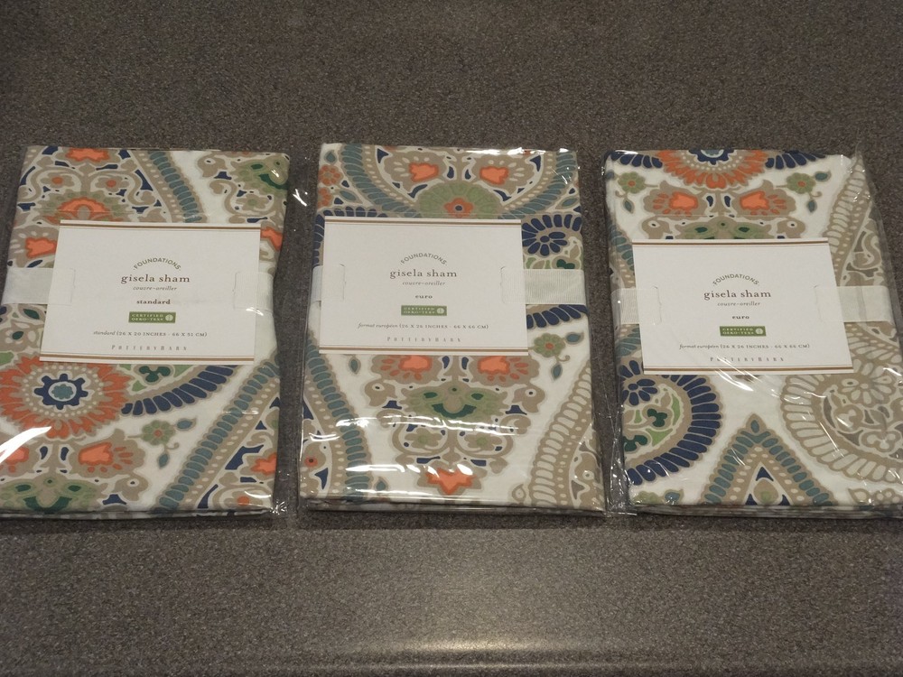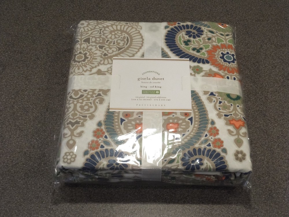 ~~~~~~~~~~~~~~~ Welcome to the Pottery Barn Treasure Trove: I have the widest selection of out of production, discontinued, and hard-to-find quilts and duvets from Pottery Barn, on the web. This is quite possibly your last chance at owning some of these classic/vintage Pottery Barn bedding patterns, in new condition, ever. Don't miss out. Once they are gone, they are gone forever. Get this while you can from a trusted eBay seller! ~~~~~~~~~~~~~~~ P O T T E R Y B A R N 6PC Gisela King Duvet Set (includes 2 Standard and 3 Euro Shams) Listing Details: This listing is for a brand new, still in the original packaging, 6 piece king duvet set from Pottery Barn. Included in the set is the duvet, 3 euro and 2 standard shams. All are new, in the original ribbons and unopened packaging. This is an absolutely stunning pattern! It is extremely difficult to find this pattern in the king size. It has been a very long time since one has been listed, in new condition and complete as a set, here on eBay. Don't hesitate - once this sells, you won't see one like it again! Google the name of the duvet (copy the title of this listing) to see other manufacturer's photos of this set. Or email me, and I can send them, or a link to them on the web. This pattern in no longer in production or for sale at Pottery Barn. Get it here while it is still available! If you have ever owned a Pottery Barn quilt, you already know how good the quality is! PRICE IS FIRM! King duvet size: 108"x92" Standard sham size: 20"x26" Euro sham size: 26"x26" ------------------------------- DISCLAIMERS (IMPORTANT): All of the items I sell come from a clean, smoke-free, pet-free home, for those of you that might have allergies. All items are authentic. None of my items are outlet items unless specifically stated. I am not affiliated with Pottery Barn in any way. My pictures are of the exact product I am selling. The condition you see the item in the picture, is the condition you will receive the item. If the resolution of the picture is not sufficient for you to make your buying decision, please feel free to contact me for more photos or for more information. I do my best to provide accurate descriptions for all items.This is an AS IS listing. Please email questions BEFORE buying as ALL SALES ARE FINAL. In the event of a fulfillment error made on my part (i.e. wrong item sent), I will pay to have you ship the item back and will send out the correct item. I do not guarantee manufacturer's quality for unopened items (I will not remove an item from original manufacturer's packaging). I do not warranty color. Cameras & computer screens do crazy things w/colors. Because I will not allow returns if you are not satisfied with how the color looks under your specific kind of lighting. Do not think to abuse the eBay resolution process, stating you received the incorrect item if you did not indeed receive the wrong item. As part of the resolution process, you WILL HAVE TO fully and clearly document and demonstrate (w/pictures & full explanation) how the product you received was not what was listed. Any frivolous use of the dispute/return process to try to return an item will be immediately reported to eBay. Despite all of the above listed disclaimers, I am a reasonable person. Unfortunately, there is a small percentage of eBay users out there that wish only to scam, waste sellers' time, and otherwise disrupt the great buying/selling resource the eBay is. Should you purchase an item and you are not satisfied with it, please email me directly, at the email listed in the PayPal payment receipt, to discuss the possibility of a return. If I grant a return authorization, it will always be under these terms: 1) you will need to pay return shipping, 2) The item must be returned in the EXACT SAME CONDITION that it was shipped 3) initial shipping fees are not refundable & 4) the refund will be equal to the purchase price, less shipping, & less a 25% restocking fee. If any of these conditions are not met, the item will be returned to you and the refund forfeited. Expensive or rare items will be shipped out with a signature service. This is a protection to both you, the buyer, and me, the seller. Also, if you have a low, or zero feedback rating, an adult signature will also be required. Should any damage of an item be incurred during shipping, it is the responsibility of the buyer to document the damage with clear picture for me to file a claim within 48 hours of receipt. Failure to provide ANY needed information will void the shipping insurance, at the buyer's risk. Document the damage with photos (pictures of exterior of the box where damaged, and pictures of broken item). Email me these pictures, along with a description of the damages. Shipping to continental US only, unless prior authorization has been made before checkout. Check out my other auctions! Thanks.
