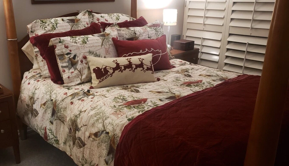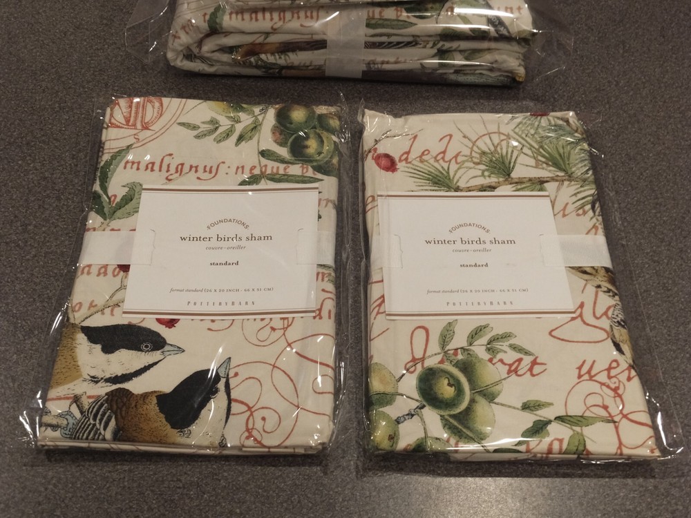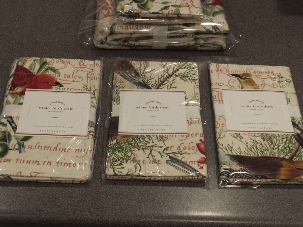 ~~~~~~~~~~~~~~~ Welcome to the Pottery Barn Treasure Trove: I have the widest selection of out of production, discontinued, and hard-to-find quilts and duvets from Pottery Barn, on the web. This is quite possibly your last chance at owning some of these classic/vintage Pottery Barn bedding patterns, in new condition, ever. Don't miss out. Once they are gone, they are gone forever. Get this while you can from a trusted eBay seller! ~~~~~~~~~~~~~~~ P O T T E R Y B A R N 6 Piece King " Winter Birds " Duvet Set Listing Details: The quintessential PB pattern! Perfect for your holiday or winter bed. The duvet set includes the following items: qty 1: King duvet size: 108" x 92" qty 2: Standard Shams* accommodates a standard size pillow: 20" x 26" qty 3: Euro Shams* accommodates a euro size pillow: 26" x 26" *the shams have a 2" flange, making the overall measurements 4" larger than the pillow insert All of the items in this duvet set are new in the original manufacturer packaging. These items are no longer in production or for sale from Pottery Barn. Only the 6 items outlined above are included in this set. No sheets, inserts or other items are included. The last picture showing this paired with the Tahoe Plaid duvet and Merry lumbar pillow is only to give you an idea of how great these look together. Those other items are not included in this listing. Check out my other listings for the Tahoe Plaid king duvet if you are interested in purchasing these as a set. Get this set only here, while it is still available! If you have ever owned a Pottery Barn quilt, you already know how good the quality is! For an absolutely stunning bed ensemble, pair this with the Pottery Barn Tahoe Plaid pattern duvet and shams. Alternatively, you can also pair this with a ruby red velvet quilt. Either way, you will have the holiday/winter bed that everyone will be jealous of! Sorry, but I cannot break up this set. It is being sold as a complete set. Price is firm! If you have any questions, please email them to me PRIOR to purchasing, as all sales are final. DISCLAIMERS (IMPORTANT): All of the items I sell come from a clean, smoke-free, pet-free home, for those of you that might have allergies. All items are authentic. None of my items are outlet items unless specifically stated. I am not affiliated with Pottery Barn in any way. My pictures are of the exact product I am selling. The condition you see the item in the picture, is the condition you will receive the item. If the resolution of the picture is not sufficient for you to make your buying decision, please feel free to contact me for more photos or for more information. I do my best to provide accurate descriptions for all items.This is an AS IS listing. Please email questions BEFORE buying as ALL SALES ARE FINAL. In the event of a fulfillment error made on my part (i.e. wrong item sent), I will pay to have you ship the item back and will send out the correct item. I do not guarantee manufacturer's quality for unopened items (I will not remove an item from original manufacturer's packaging). I do not warranty color. Cameras & computer screens do crazy things w/colors. Because I will not allow returns if you are not satisfied with how the color looks under your specific kind of lighting. Do not think to abuse the eBay resolution process, stating you received the incorrect item if you did not indeed receive the wrong item. As part of the resolution process, you WILL HAVE TO fully and clearly document and demonstrate (w/pictures & full explanation) how the product you received was not what was listed. Any frivolous use of the dispute/return process to try to return an item will be immediately reported to eBay. Despite all of the above listed disclaimers, I am a reasonable person. Unfortunately, there is a small percentage of eBay users out there that wish only to scam, waste sellers' time, and otherwise disrupt the great buying/selling resource the eBay is. Should you purchase an item and you are not satisfied with it, please email me directly, at the email listed in the PayPal payment receipt, to discuss the possibility of a return. If I grant a return authorization, it will always be under these terms: 1) you will need to pay return shipping, 2) The item must be returned in the EXACT SAME CONDITION that it was shipped 3) initial shipping fees are not refundable & 4) the refund will be equal to the purchase price, less shipping, & less a 25% restocking fee. If any of these conditions are not met, the item will be returned to you and the refund forfeited. Expensive or rare items will be shipped out with a signature service. This is a protection to both you, the buyer, and me, the seller. Also, if you have a low, or zero feedback rating, an adult signature will also be required. Should any damage of an item be incurred during shipping, it is the responsibility of the buyer to document the damage with clear picture for me to file a claim within 48 hours of receipt. Failure to provide ANY needed information will void the shipping insurance, at the buyer's risk. Document the damage with photos (pictures of exterior of the box where damaged, and pictures of broken item). Email me these pictures, along with a description of the damages. Shipping to continental US only, unless prior authorization has been made before checkout. Check out my other auctions! Thanks.