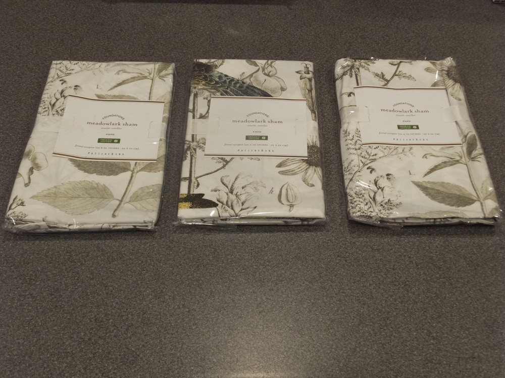 P O T T E R Y B A R N 6PC Meadowlark King Duvet Set (with 2 Standard and 3 Euro Shams) ~~~~~~~~~~~~~~~ Welcome to the Pottery Barn Treasure Trove: I have the widest selection of out of production, discontinued, and hard-to-find quilts and duvets from Pottery Barn, on the web. This is quite possibly your last chance at owning some of these classic/vintage Pottery Barn bedding patterns, in new condition, ever. Don't miss out. Once they are gone, they are gone forever. Get this while you can from a trusted eBay seller! ~~~~~~~~~~~~~~~ Listing Details: This listing is for a brand new, still in the original packaging, 6 piece king duvet set from Pottery Barn. Included in the set is the king duvet, 3 euro and 2 standard shams. All are new, in the original ribbons and unopened packaging. This pattern in no longer in production or for sale at Pottery Barn. As of the time of this listing being first created, there were no others of this pattern and size, complete with matching shams and in new condition, available on eBay. Get this here while it is still available! If you have ever owned a Pottery Barn quilt, you already know how good the quality is! PRICE IS FIRM! King duvet size: 108"x92" Standard sham size: 20"x26" Euro sham size: 26"x26" ------------------------------- DISCLAIMERS (IMPORTANT): All of the items I sell come from a clean, smoke-free, pet-free home, for those of you that might have allergies. All items are authentic, either from a retail store or potterybarn.com. None of my items are outlet items unless specifically stated. I am not affiliated with Pottery Barn in any way. Items that are new are either: 1) new unopened in the original plastic and original ribbons, 2) new unopened with the original ribbons, or a retail or potterybarn.com repackage. My pictures are of the exact product I am selling. The condition you see the item in the picture, is the condition you will receive the item. If the resolution of the picture is not sufficient for you to make your buying decision, please feel free to contact me for more photos or for more information. I do my best to provide accurate descriptions for all items. This is an AS IS listing. Please email questions regarding an item BEFORE buying as ALL SALES ARE FINAL. In the event of a fulfillment error made on my part (i.e. item sent was not the same as what was listed, such as a lamp instead of a duvet), I will pay to have you ship the item back and will send out the correct item. To date, I have had ZERO fulfillment errors. I do not guarantee manufacturer's quality for unopened items, as I cannot and will not remove and unfold from the original manufacturer's packaging. I do not make any warranty of color, as cameras and computer screens do crazy things with colors. Again, know before you buy, because I will not allow returns if you are not satisfied with how the color looks under your specific kind of lighting. Because I do not accept returns, unless there was a clear error on my part, do not think to abuse the eBay resolution process, stating you received the incorrect item if you did not indeed receive the wrong item. As part of the resolution process, you WILL HAVE TO fully and clearly document and demonstrate, with pictures and a full explanation, how the product that you received was not what was listed. Any frivolous use of the dispute/return process to try to return an item will be immediately reported to eBay. Despite all of the above listed disclaimers, I am a reasonable person. Unfortunately, there is a small percentage of eBay users out there that wish only to scam, waste sellers' time, and otherwise disrupt the great buying/selling resource the eBay is. Should you purchase an item and you are not satisfied with it, please email me directly, at the email listed in the PayPal payment receipt, to discuss the possibility of a return. If I grant a return authorization, it will always be under these terms: 1) you will need to pay return shipping, using the same shipping with tracking method that the item was shipped 2) The item must be returned in the EXACT SAME CONDITION that it was shipped out in 3) initial shipping fees are not refundable and 4) the refund will be equal to the purchase price, less shipping, minus a 25% restocking fee. If any of these conditions are not met, the item will be returned to you and the refund forfeited. Tracking information is provides for most purchases. Most items with a value of $100 or more, or that are rare, will be shipped out with an adult signature service. This is a protection to both you, the buyer, and me, the seller. Also, if you have a low, or zero feedback rating, an adult signature will also be required. This service is $2.35 for USPS and $5.00 for UPS. In most situations, I will cover that fee. Should any damage of an item be incurred during shipping, it is the responsibility of the buyer to file a claim with the shipper. I insure my items for the purchase value. I also strive to package the items in a manner that will result in safe delivery. However, some breakable items can incur damage in shipment. If you receive an item that is damaged during shipment, email me immediately. Document the damage with photos: take pictures of the exterior of the box where damage occurred. Take pictures of the box opened, prior to removing the packaging, and finally, take clear pictures of the broken item (close-ups and of the entire item itself). Email me these pictures, along with a description of the damages. You will be able to use the same pictures and information for filing the claim with the shipping agent used. PayPal is the preferred method of payment. Funds must clear prior to shipment of the product. I will not ship to an unconfirmed PayPal address. No shipping to P.O. Boxes. Please check out my other auctions! Thanks.