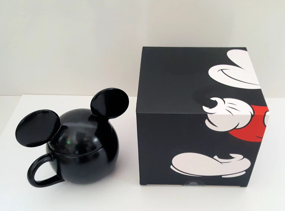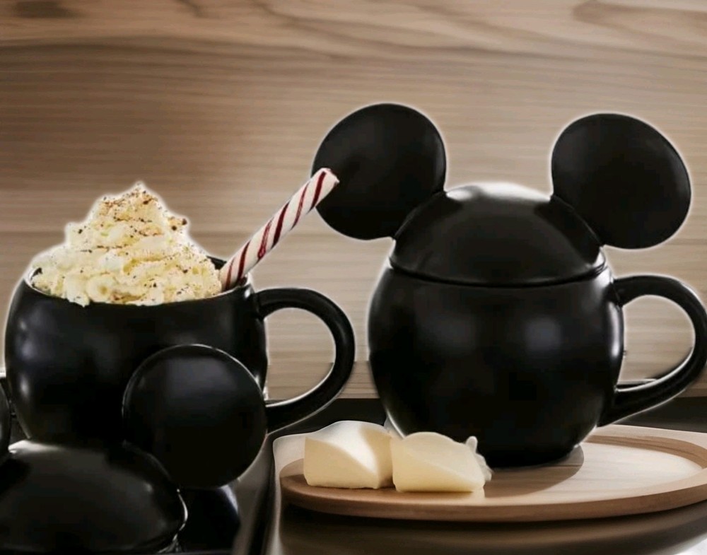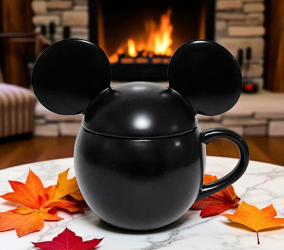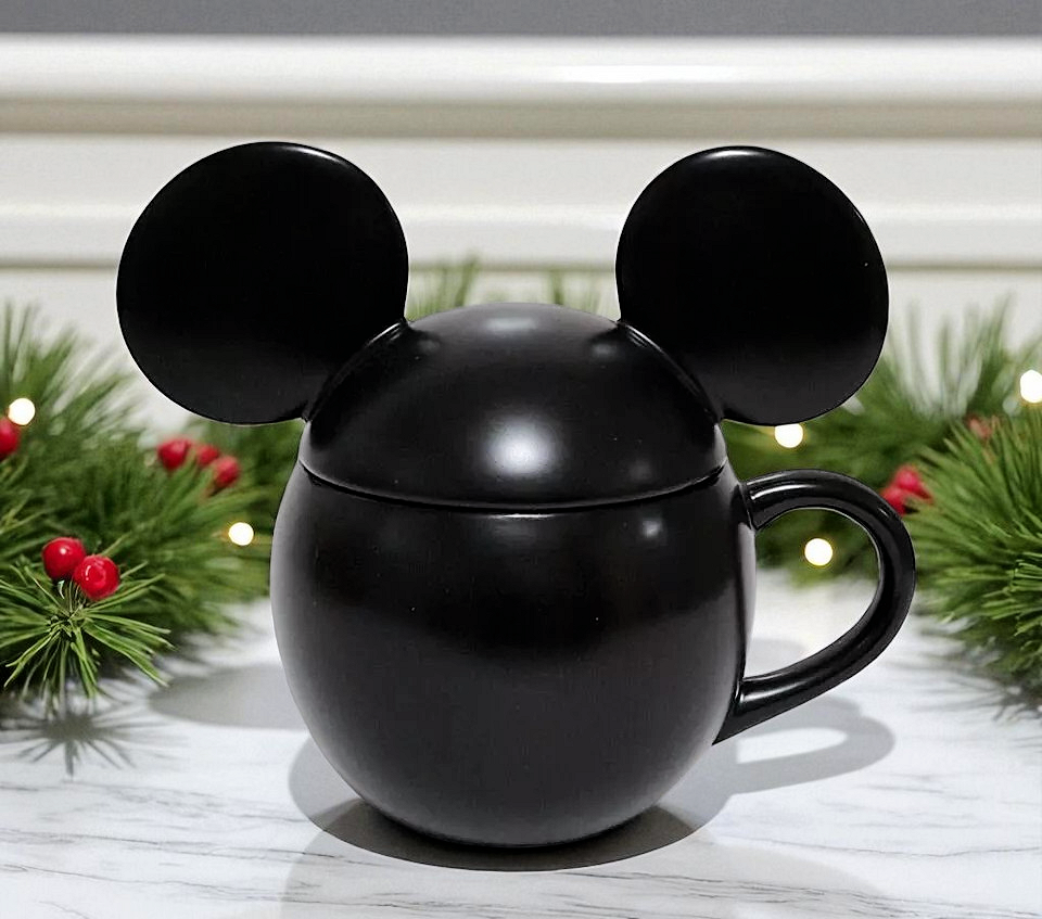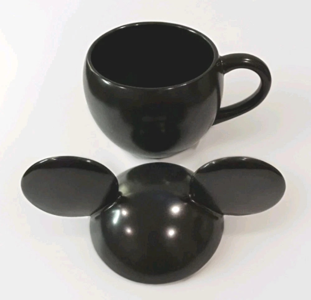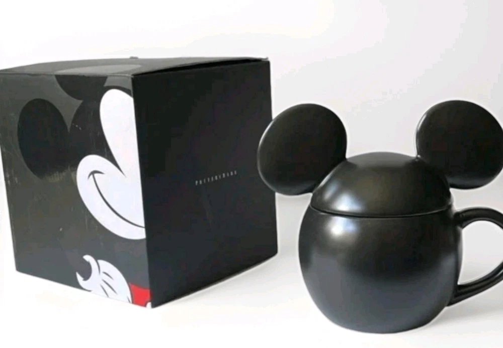 SOLD OUT AT POTTERY BARN Inspired by vintage illustrations of Mickey Mouse’s 1928 debut, this nostalgic mug celebrates the magic of Disney. Crafted of stoneware and finished with a glossy black finish, this mugs make everything—from your morning coffee to hot cocoa parties—all the more fun. To top it off, they come with a mouse-ear lid for steeping teas or keeping soups nice and warm. Crafted of 100% stoneware with a lid. Features a color glazed decal finish. Dishwasher and microwave safe. · Overall: 7.25" wide x 5" deep x 6.5" high · Lid Only: 7.25" wide x 4.25" deep x 3.25" high · Capacity: 20 ounces · Microwave and dishwasher safe.