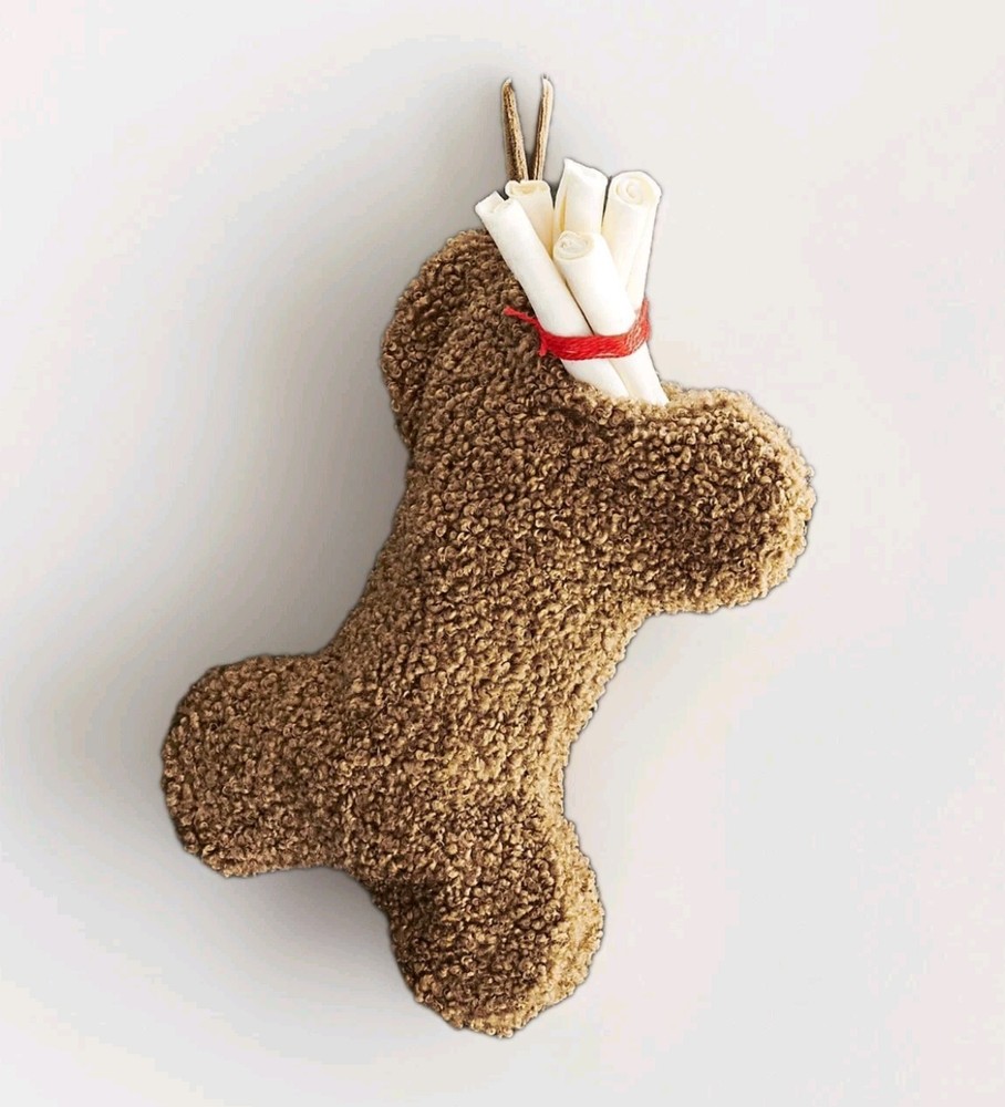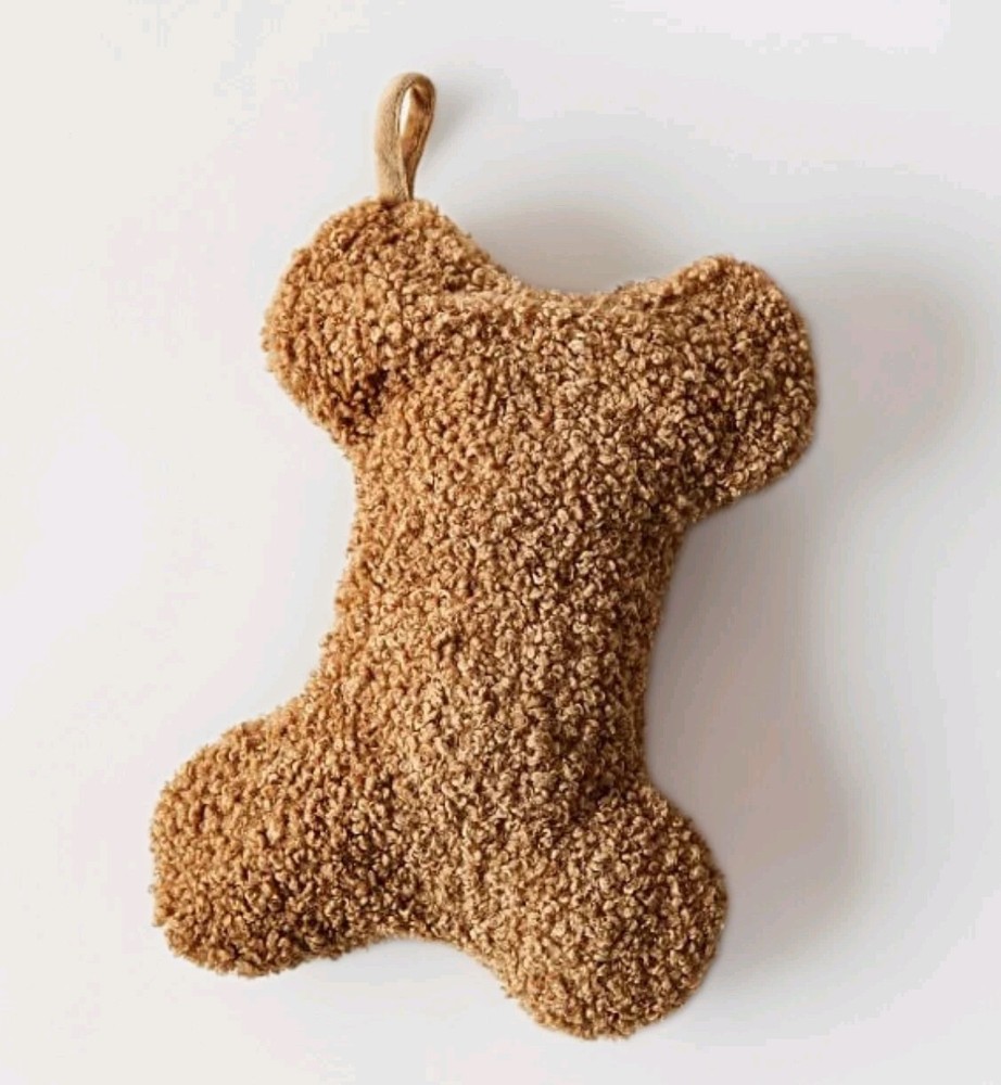 We all know who made it onto Santa’s Nice List this year. As cuddly and soft as your furry BFF, this stocking is the perfect place to tuck bones, treats, and squeaky toys for your real-life teddy bear. Made of 100% polyester and lined in 100% polyester. Overall: 10" w x 14" l Top Opening: 6" w Hang Loop: 3" l Spot clean fabric with a damp, white cloth. Blot to remove excess water. Air dry.
