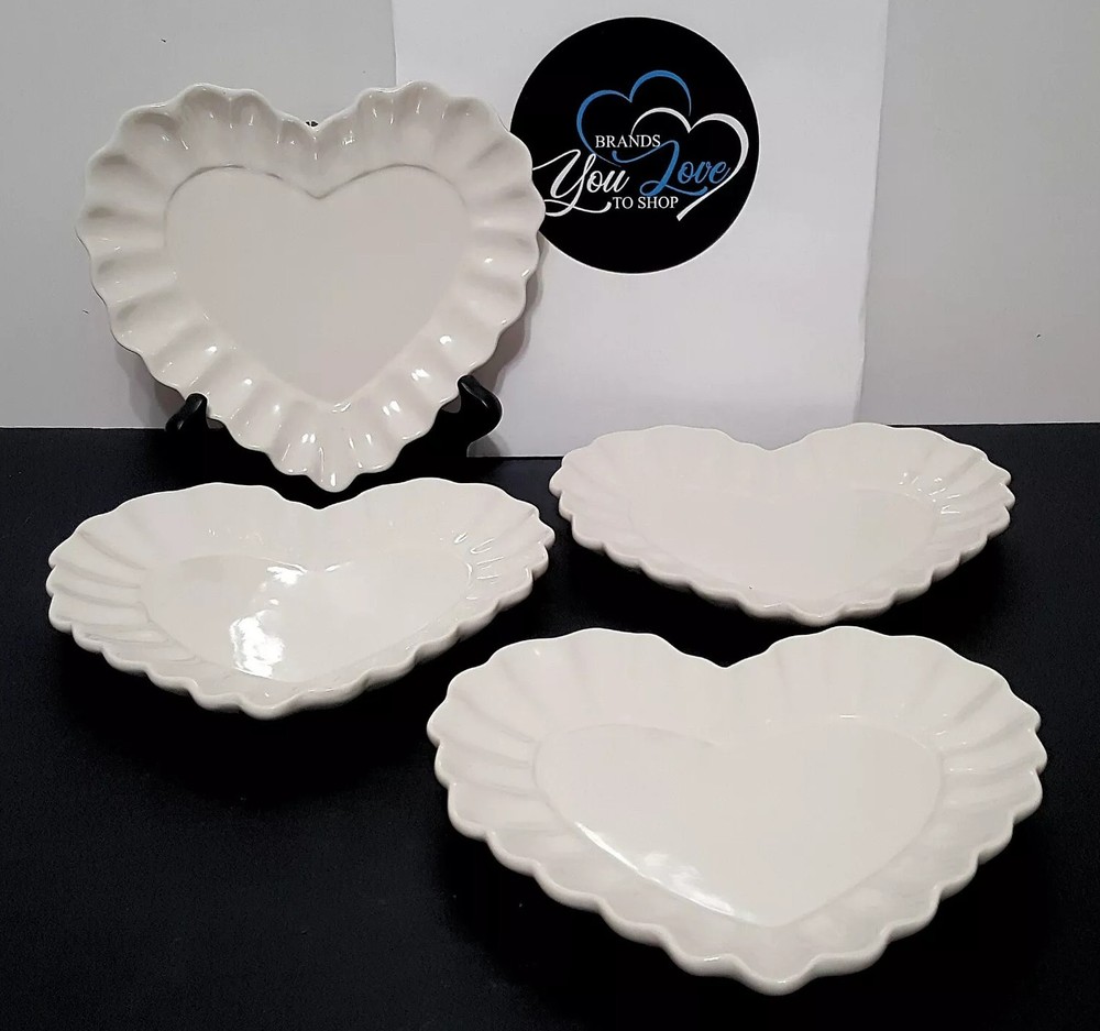 SOLD OUT AT POTTERY BARN Don't miss out on these plates. Hand shaped like a romantic drape of fabric, these plates are as sweet as a love note. Whether it’s a housewarming gift for new couples, decorating a Galentine brunch table or serving a romantic meal, this is one of the best ways to XO all year. Set of 4 white Handcrafted of stoneware with a hand painted White glazed finish. Oven safe at 220° C or 425° F. Set of 4. Overall: 7.5" w x 7" d x 1" th Dishwasher and microwave safe.