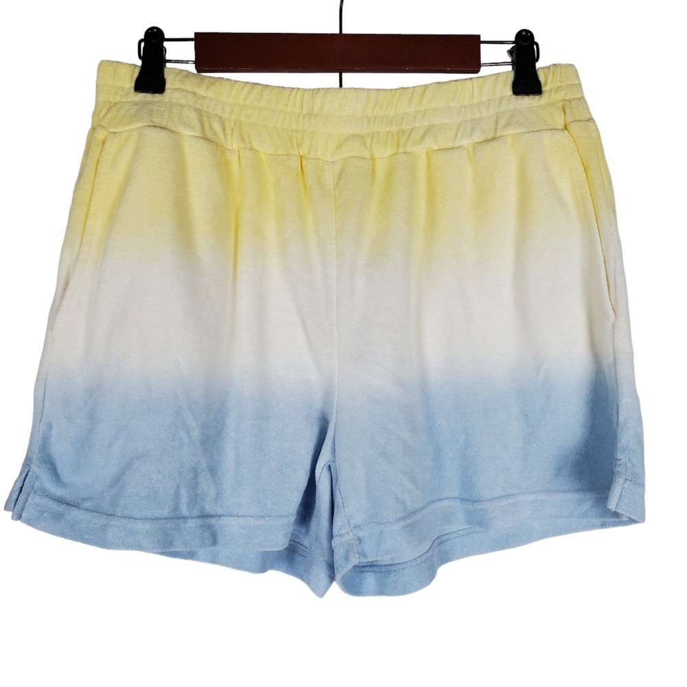 NEW Rails Women's Jane Sky Blue Dip Dye High Rise Terry Shorts Size L Pockets Pull On Size Large NEW with tags, no flaws, excellent condition These cozy Rails shorts feature a super plush reverse terry cloth, relaxed fit, smocked elastic waistband, front pockets, back patch pocket and wide leg with flattering side slits. 40% Cotton 40% Rayon 20% Polyester Machine wash Approx Flat Measurements Waist 14.5" UNstretched Front Rise 11" Inseam 3" RETURN: We do accept returns. For a return or exchange: We offer Free Return for U.S. customers only. Prepaid shipping label will be provided but original shipping fee is NOT refundable International buyers will be responsible for all shipping fees. Item must be in original condition as it was shipped. Return must be made within 30 days from reception