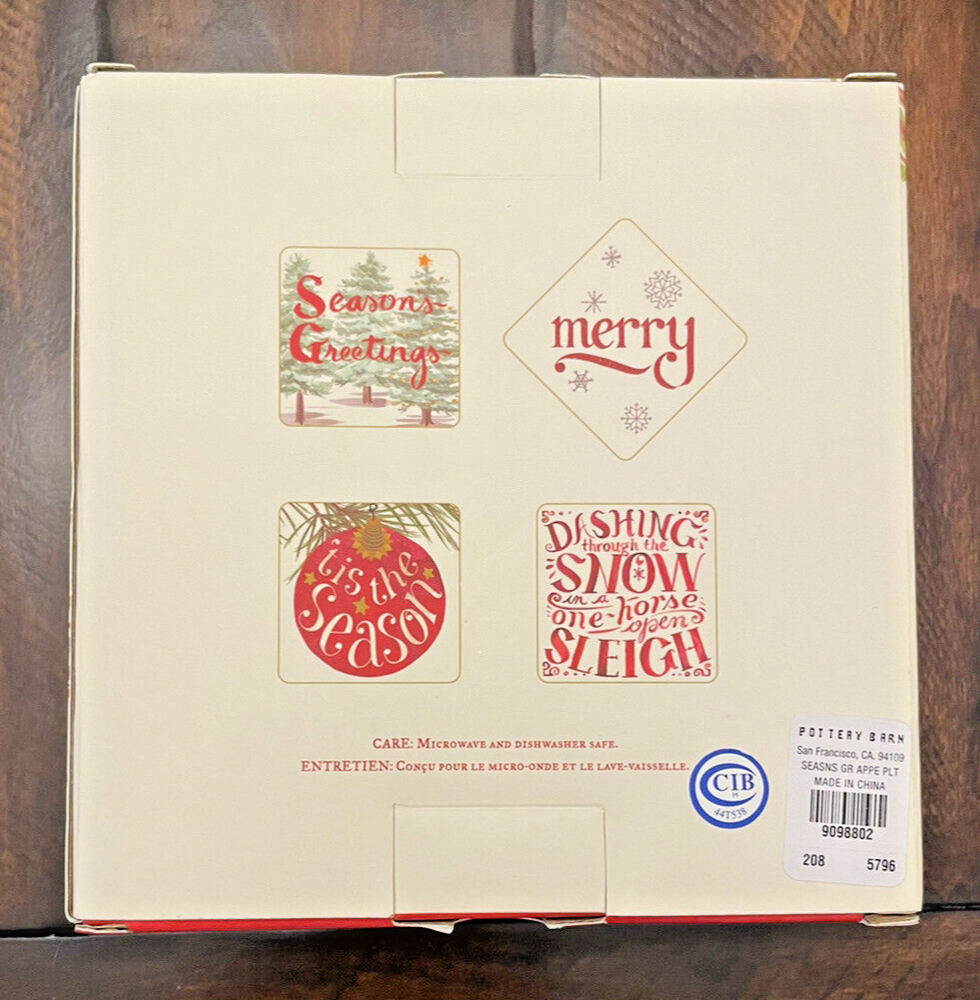 For Sale: One (1) Set of Four (4) Brand New & Unused Pottery Barn 'Tis The Season Holiday Appetizer Plates, four different designs, each measuring 5.5” square! Bought from PB directly and still in their original box — PB SKU # 9098802! Bought new and never used, as shown — with original packaging intact. Multiple, coordinating sets available — specify your quantity at checkout and we're DELIGHTED to combine shipping! New and unused, pulled out of a moving box, after being purchased in store in St. Louis, MO! Please note that you are purchasing one (1) set of appetizer/snack plates, as pictured and described; nothing else is included. I purchased other, coordinating items and all are listed separately. Shipping Information: Items will be shipped via ground service on/by the day after payment is received. Tracking information will be provided once the shipping label is generated. Please Note: I am not affiliated with Pottery Barn and/or Williams-Sonoma; I’m simply clearing out my closets! Interested? Make an offer – all offers will be considered! Please ask any questions before purchasing – all sales are final. If you encounter any post-sale issues, please reach out to me directly before opening a claim. While I can’t control shipping times or transit delays, I will always do what I can to help! Thanks for looking!