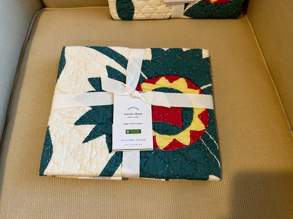 NEW Set of 2 Pottery Barn Maisie Hand Quilted Cotton EURO Sham Shams