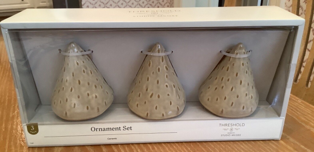 NEW! Studio McGee Threshold Christmas Tree Bell Ornaments Set 3 Ceramic Beige New in original packaging, Three-piece, set Ceramic natural materials, Thanks for looking. Check out my other items. 10244