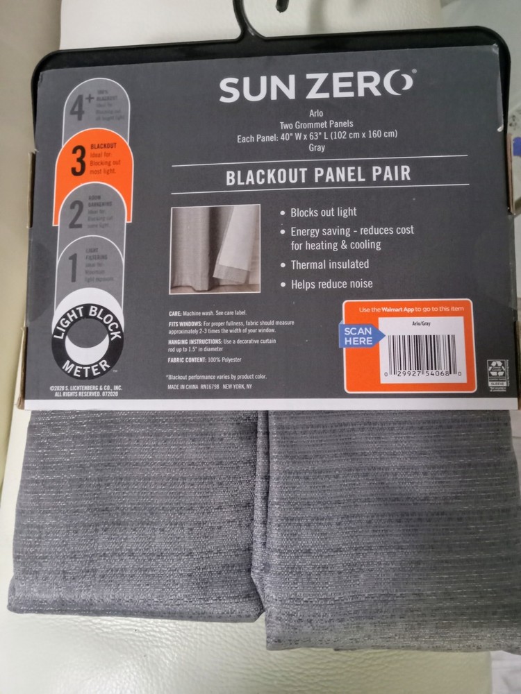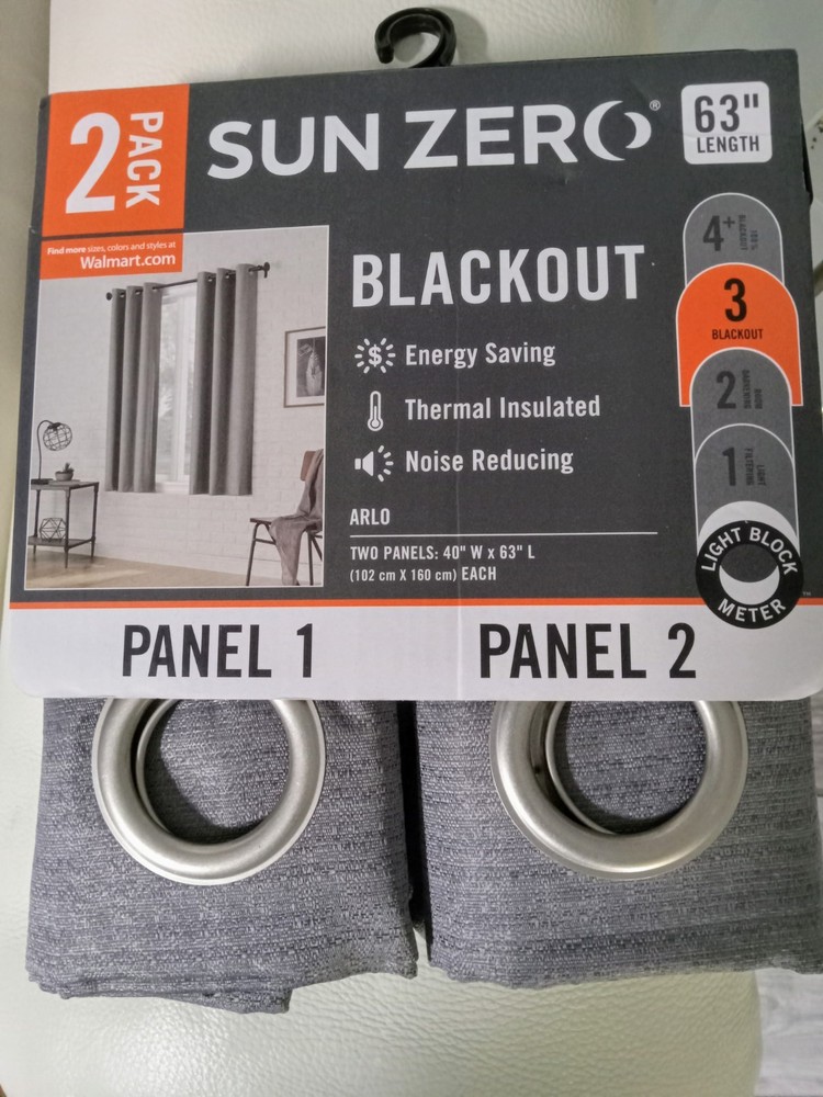 Sun Zero Blackout Curtains are a stylish and modern addition to any room in your home. Made of durable gray polyester material, these grommet-top panels are designed to block out light for a dark and cozy atmosphere. Perfect for media rooms or any room in your home, these curtains come in a convenient 2-pack with each panel measuring 40" x 63" inches. Easy to install and easy to maintain, these curtains are a great choice for adding privacy and style to your living space. BRAND NEW IN PACKAGE