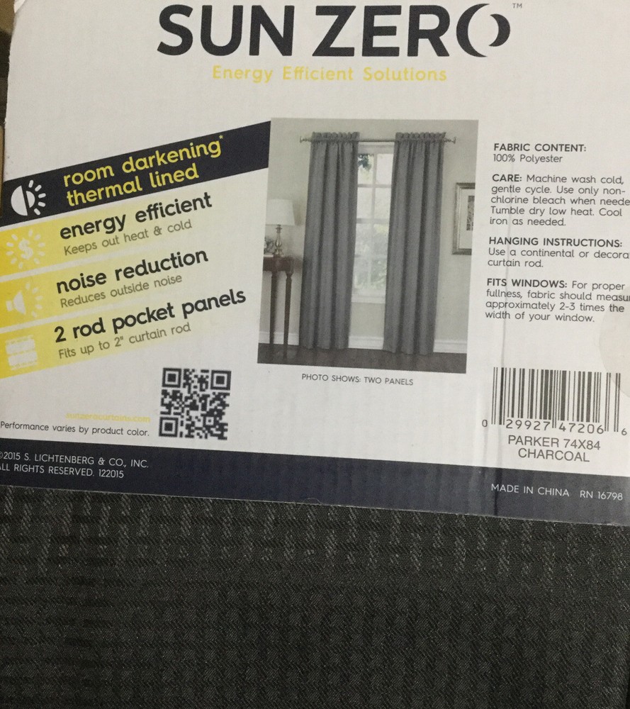 NEW Sun Zero Parker Room Darkening Rod-Pocket Set of 2 Curtain Panels 37x84. Room darkening, thermal lined for energy efficiency, noise reduction, fits up to 2” curtain rod. Condition is New.