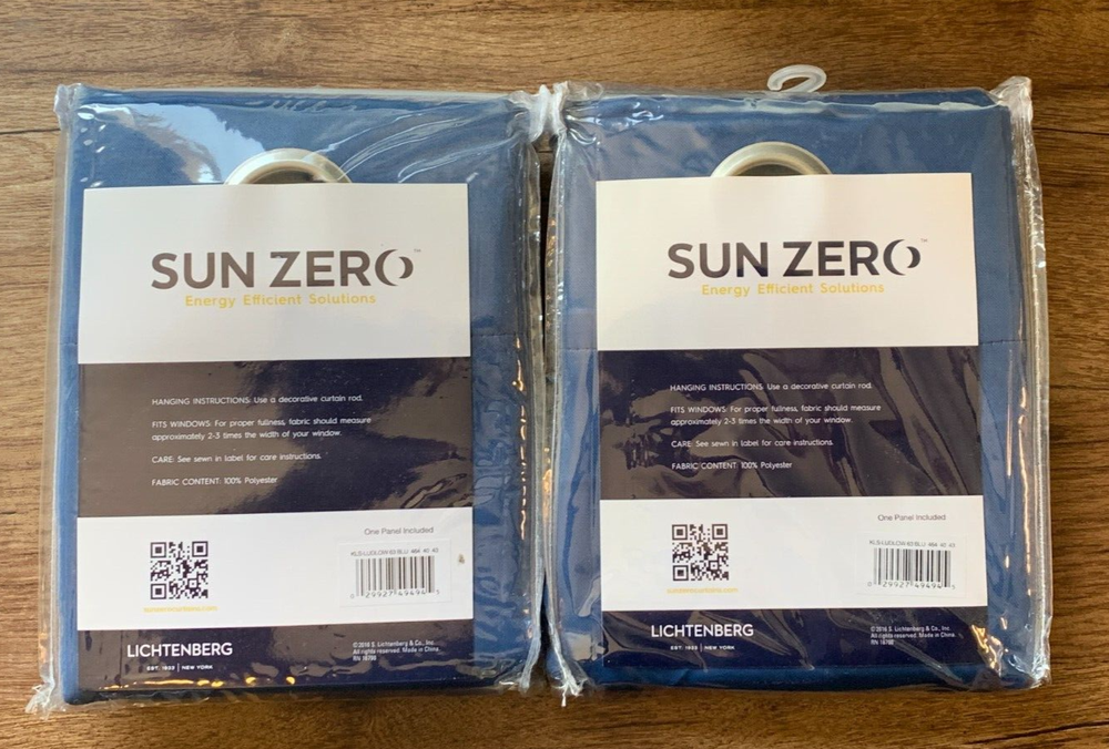 NEW Sun Zero Blackout Two (2) Panels Ludlow Grommet Window Curtains Blue 54"x63" This listing is for two (2) panels as shown in the photos. Original Owner - never opened or used. Changed room color so they were never opened. We value your feedback! Buying and selling online requires a level of trust and we want you to know that we do our best to list our items accurately and price them fairly. Most items at this time are our personal items as we declutter and help our family members do the same, so we know the history of the pieces and only list those that are in excellent condition or new with tags. Photos will show any defects. We are a pet & smoke free home. Thank you for your interest