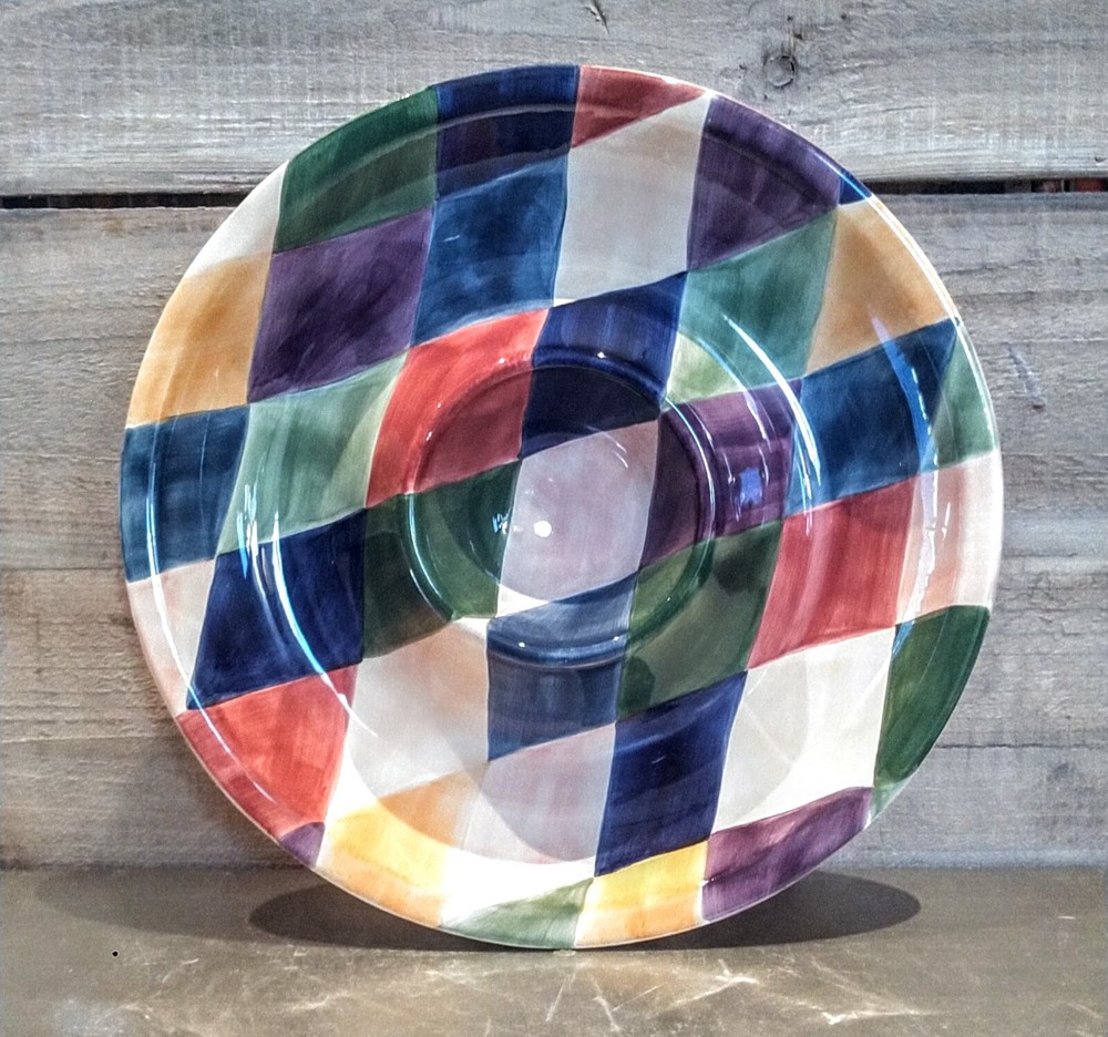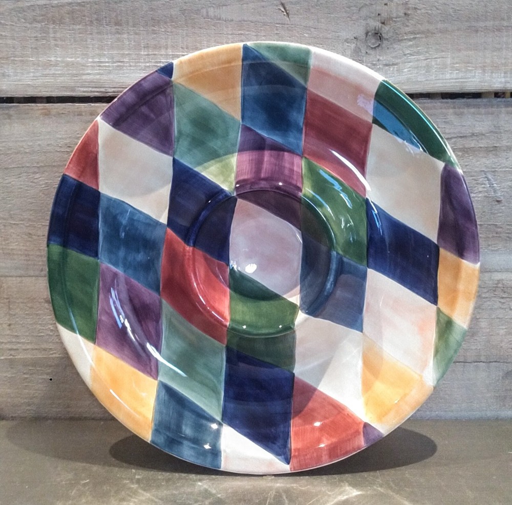 TABLETOPS UNLIMITED Pattern: CARNIVAL Listing Item: (1) Large Chip & Dip 13 1/2 inches wide GIFT QUALITY ! Photos are taken from actual inventory Note that white marks are not flaws but reflections of light due to the high gloss finish. Inspected and in clean, 1st quality condition with manufacturer's label still intact. Very versatile and BEAUTIFUL coloring! Please review my other listing for coordinating pieces or other Distinctive Fine Goods! ~~~~ ><> ~~ * ~~~ RETURN POLICY & SHIPPING Delivery Note: Please make sure your shipping address is correct when checking out! NEED A DIFFERENT SHIPPING METHOD? CONTACT ME FOR DETAILS BEFORE PURCHASING FOR POSSIBILITIES! Feel free to ask questions regarding this product! 24-48 hour response time respected. Your purchase will be photographed, carefully packaged, insured and promptly shipped. Clean ~ No Scents Used Please refer to manufacturer for warranty information as seller does not warranty items sold, except for condition. Respectfully, no returns please. THANK - YOU SERVING EBAY CLIENTS FOR MANY YEARS WITH PERSONAL & PROFESSIONAL CARE For your assurance, please feel free to review my Seller Feedback!