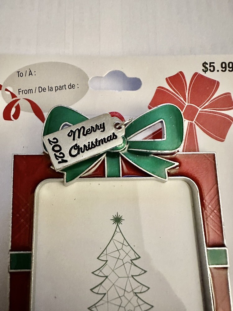 This holiday season, add a touch of personalized charm to your Christmas tree with this brand new gift box shaped ornament. The metal frame can hold a photo or picture and features a removable dated charm for the year 2021. The ornament is beautifully colored in red, green and silver, making it a perfect addition to your holiday decor. Measuring 3.5 inches in height and 2 3/4 inches in width, this ornament is sure to stand out on your tree. Celebrate the season with this unique and festive Studio Decor gift box ornament, perfect for any occasion. Size Picture 2.25” x 2.25” Item from smoke & pet free home. Ships USPS ground advantage. Thanks for shopping with me.