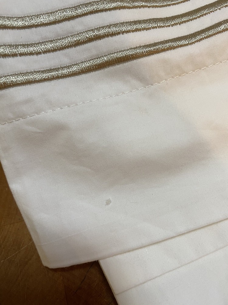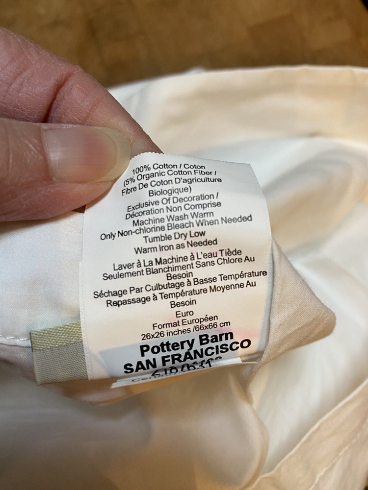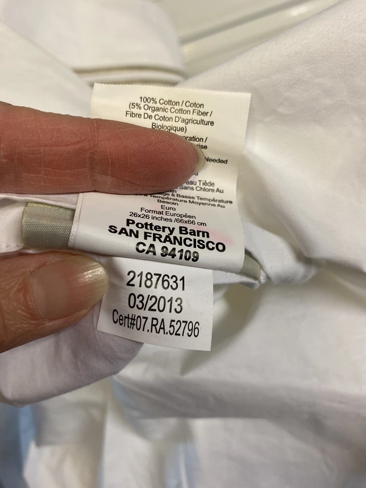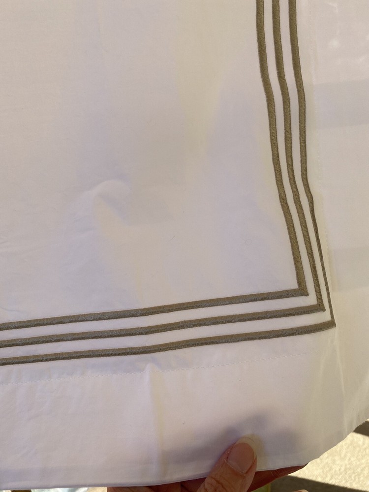 NEW pottery barn grand embroidered EURO sham white Taupe mocha. New without tags. 100% cotton. Outside measures 30” x 30”. Inside where pillow goes is 26” 26”. Last image shows tiny hole where the plastic pice tag was. Embroidery is taupe, goldish in color. 4 available at time of listing.