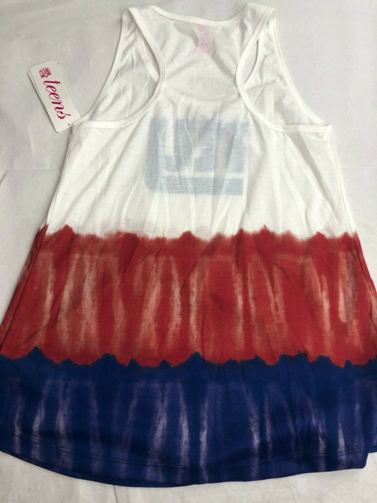 NFL New York Giants Juniors Racerback Dip Dye Tank - NWT Size: M, L, XL Color: White/Red/Blue Material: 100% Polyester - This is a Licensed NFL Item - AP - BI - 151 We want you to be completely happy! If for any reason you are not happy with your purchase we will gladly accept returns (excluding swimwear and intimate bottoms, health, beauty and fragrance items, and perishables). You will receive a full refund for the cost of the merchandise less all shipping cost Item(s) must be returned in original, unused condition within 30 days with original tags/packaging. If there are any signs of wear, heavy perfumes or smoke the item will be mailed back to you. If applicable, any protective inner lining must be intact. Intimate apparel bottoms including panties and swimwear bottoms are non-returnable. USPS ECNONOMY MAIL 6.99 - 2.99 EACH ADDITIONAL PRIORITY MAIL - 9.99 - 2.99 EACH ADDIONAL