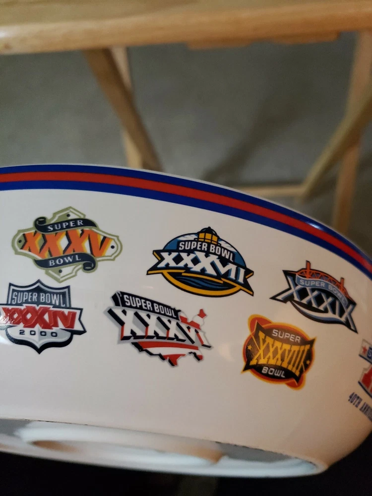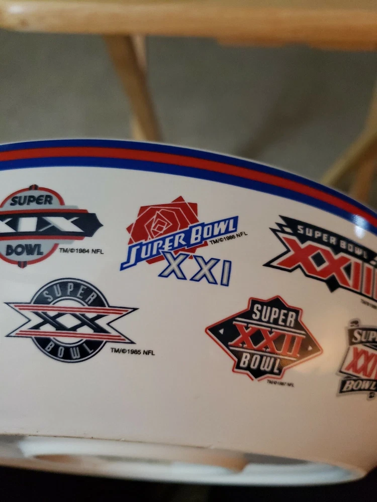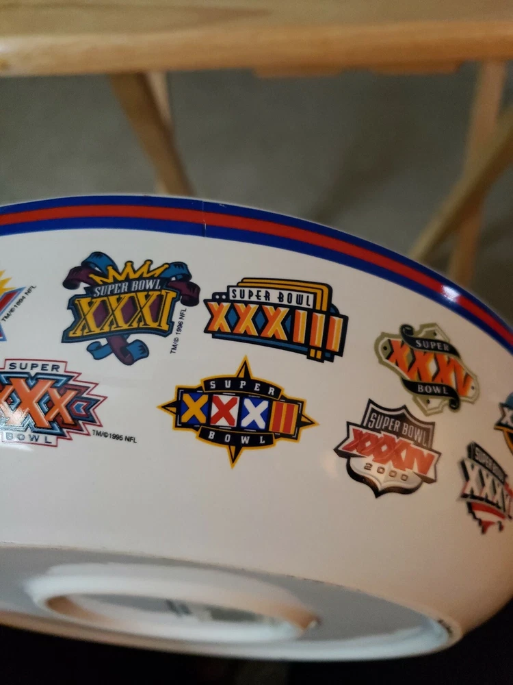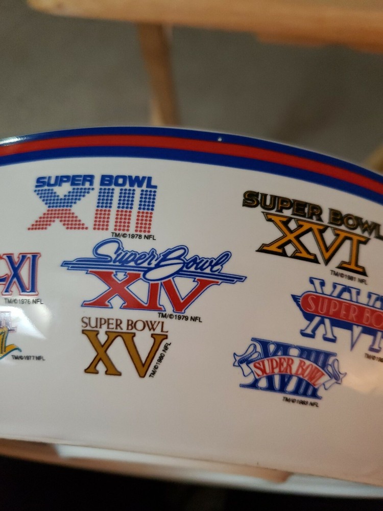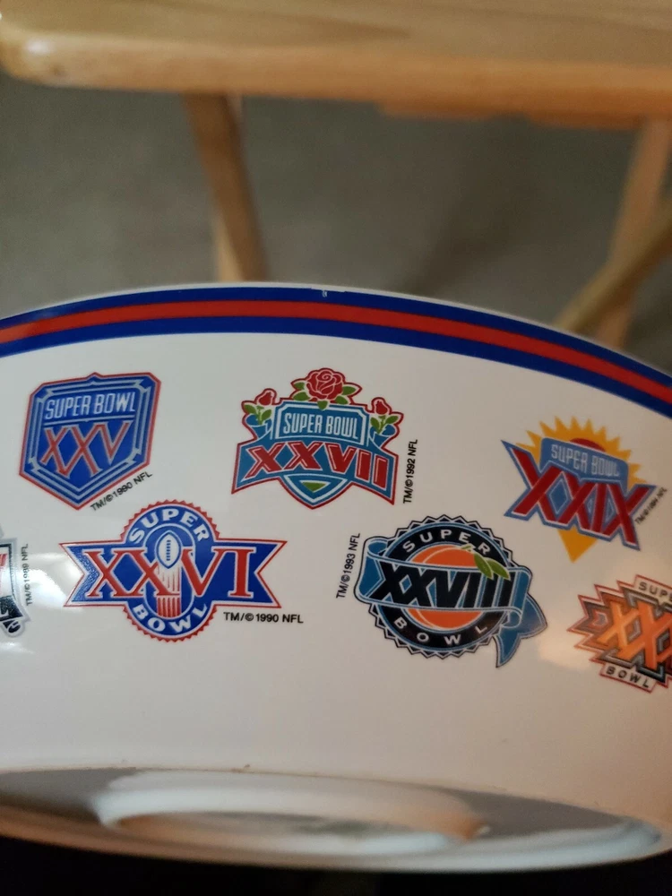 NFL~40 Superbowl Logos~10"Chip Bowl & 4.5" Dip Bowl Set~40th Anniversary~3 a Day(B48). Condition is Used. No Chips,Cracks or Repairs. See Photos for Details. Shipped USPS Priority Mail.