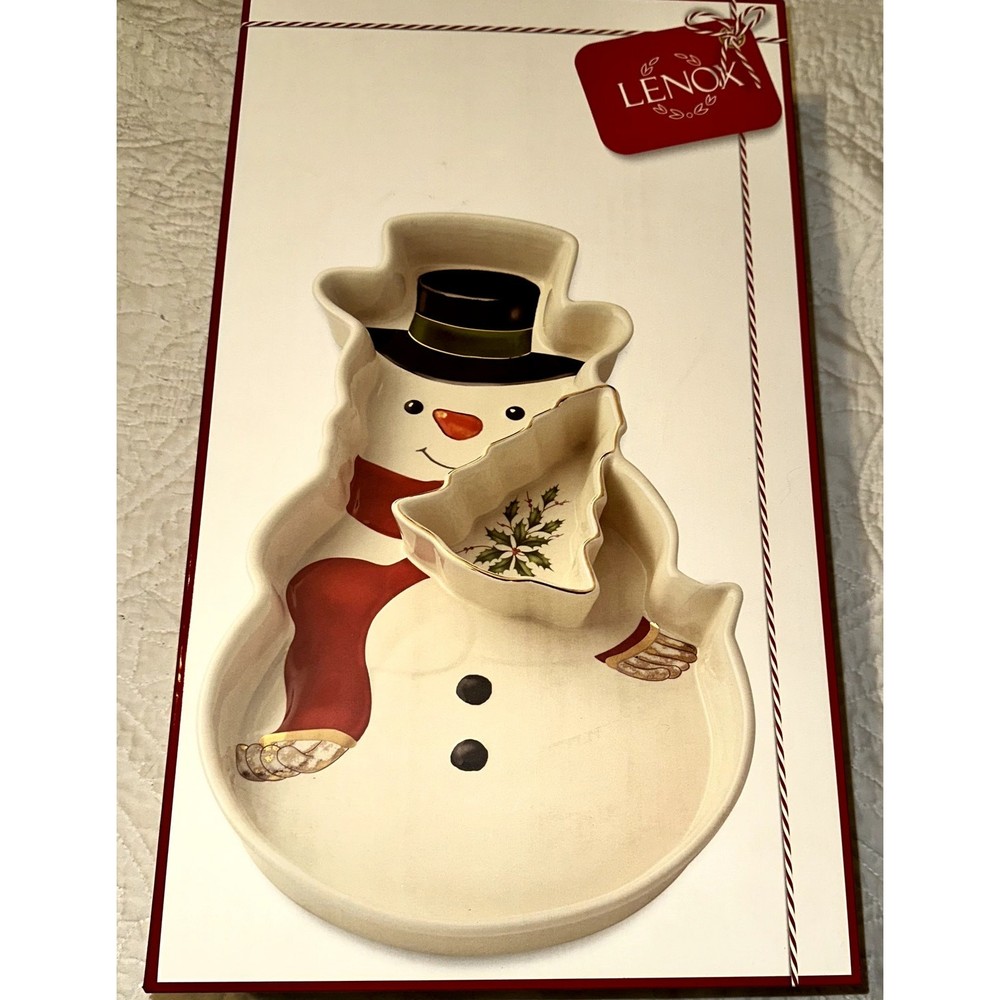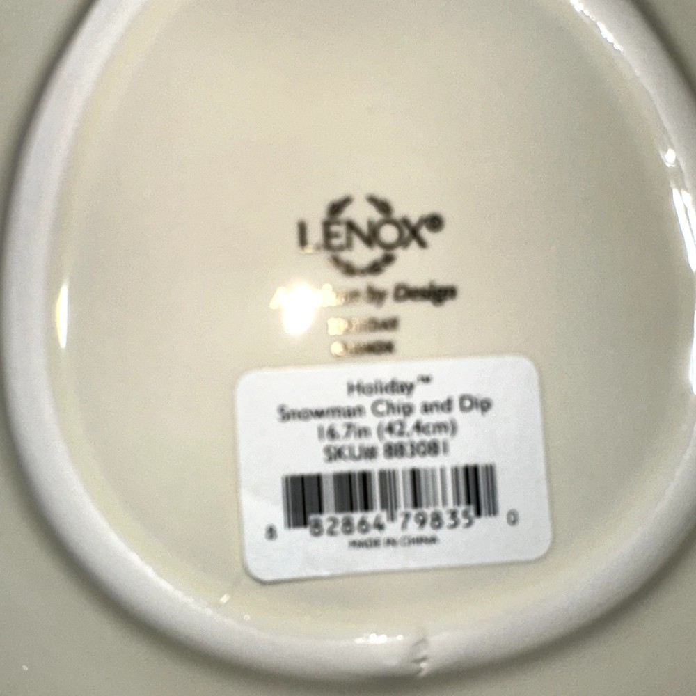 <![CDATA[<div>Add a festive touch to your holiday entertaining with this Lenox chip and dip serving bowl. The ivory porcelain bowl features a snowman design, perfect for Christmas occasions. The set includes one chip and dip server. Crafted with original design and production, this set is a must-have for any collector. Impress your guests with this elegant and original Lenox chip and dip bowl. The gold trim around the tree tops off the elegance of this set. This is new in the box, never been used. There are no chips, cracks or otherwise defects. Comes from a pet friendly/smoke free home.