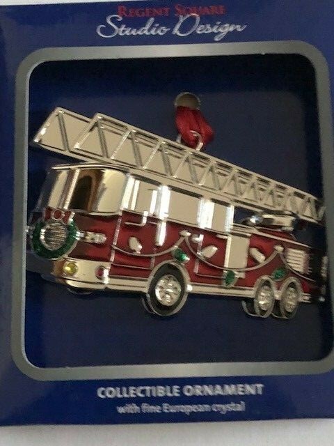 NEW IN BOX REGENT SQUARE STUDIO DESIGN FIRE ENGINE CHRISTMAS ORNAMENT COLLECTIBLE ORNAMENT WITH FINE EUROPEAN CRYTSTAL MADE IN CHINA NOTE: DUE TO LIMITATIONS IN PHOTOGRAPHY, AND DIFFERENCES IN MONITOR/CAMERA SETTINGS, THE COLORS SHOWN IN THE PHOTOGRAPH MAY NOT CORRESPOND 100% TO THOSE IN THE ITEMS THEMSELVES. LIGHTING, DISPLAY AND OTHER FACTORS MAY CAUSE COLOR SHADING AND/OR LENS FLARE ON THE ITEMS PHOTOGRAPHED. PLEASE REVIEW ALL THE PHOTOS AS THEY ARE AN IMPORTANT PART OF THE DESCRIPTION. PICTURES SHOW THE ACTUAL ITEM OFFERED. PLEASE EMAIL ME IF YOU HAVE ANY QUESTIONS PRIOR TO PURCHASE OF THE ITEM. ALSO NOTE THAT I AM NOT AN EXPERT ON ALL MY ITEMS I SELL. I TRY EXCEPTIONALLY HARD TO DESCRIBE EACH ITEM AND ITS CONDITION AS ACCURATELY AS I CAN. Thanks for looking! Much appreciated. Be sure to add me to your favorites list! I am in excellent standing with Ebay...so buy with confidence!