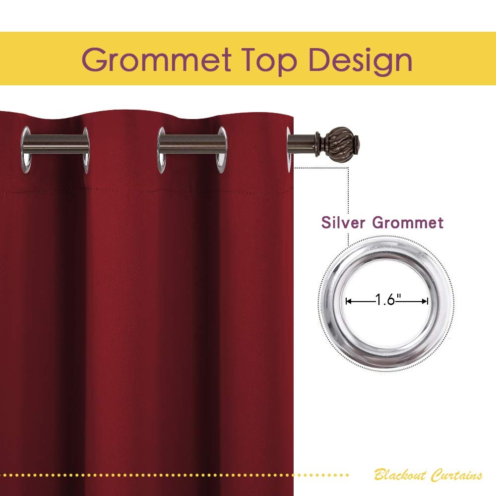 Product Page NICETOWN Christmas Bedroom Curtain Panels Blackout Draperies, Home Dec Description: Features: ELEGANT DESIGN: 2 panels per package. Each Blackout Curtain measures 42" wide x 72" long. The design of silver grommet (1.6-inch inner diameter) creates casual elegance for your house, which makes the curtains easy to install and slide. AMAZING MATERIAL: Super heavy and soft Blackout Curtain Panels are very upmarket. Besides, 85%-99% light blocking, thermal insulated, soundproof, Fade-resistant, energy-efficient. Thread trimmed and wrinkle-free, both sides are the same color. WISE CHOICE: Protect your furniture and floors from sun exposure, while enhancing the energy efficiency of your home. Enjoy added privacy with our curtains, designed to ensure a restful night's sleep that leaves you energized each day. WIDE COMPATIBILITY: Don't bother looking for valance to match, choosing different styles of blackout valance with the same color in the store. Such curtain sets provide a more permanent harmonious window dressing. EASY MAINTENANCE: Machine or hand washable. Mild detergent no bleaching. Low-temperature ironing. Measure your pole and window size before you choosing curtains.