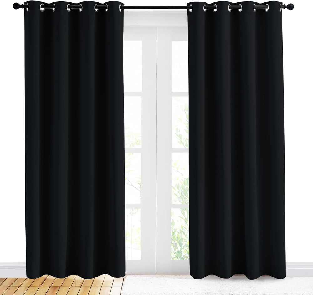Store New Arrivals Add to Favorite View Feedback Contact NICETOWN Black Blackout Curtains for Bedroom 84 Inches Long - Light Reducing Thermal Insulated Solid Grommet Black Out Curtains/Panels/Drapes for Living Room (Set of 2, W52 X L84) Description Item model number NICETOWN_Blackout Style Casual Number of Items 2 Assembly required No Pattern Solid Package Weight 1.55 Kilograms Theme Blackout Curtains Brand NICETOWN Opacity Blackout Inches Unit Count 1.0 Count Room Type kids room, Living Room, Nursery, Dining Room Batteries required No Product Dimensions 84"L x 52"W Material Fabric Top Style Grommet Volume 0.1 Cubic Inches Model Name NTGMBLKSLD2-52GM2ALL Number of shelves 2 Seasons Winter Is Discontinued By Manufacturer No Specific Uses For Product home decor, light blocking, noise reduction, privacy protection, home theater Manufacturer NICETOWN Curtain Form Drapes Perfume Unscented Item Weight 3.4 pounds Compatible with Rod Size 1.60 Special Feature Window Treatments, Bagged Antibacterial treatment Thermal Hanging Method Grommet Color Black Recommended Uses For Product bedroom, living room, blocking light, providing privacy, reducing noise levels, promoting better sleep, energy saving Size 52"W x 84"L (Pack of 2) Fabric Type 100% Polyester Product Care Instructions Mild Detergent Number of pieces 2 100% Polyester Elegant Design: 2 panels per package. Each Blackout Curtain measures 52" wide x 84" long. The design of silver grommet (1.6-inch inner diameter) creates casual elegance for your house, which makes the curtains easy to install and slide. Amazing Material: Super heavy and soft Blackout Curtain Panels are very upmarket. Besides, 85%-99% light blocking, thermal insulated, soundproof, and energy-efficient. Thread trimmed and wrinkle-free, both sides are the same color. Good Performance: Protect your furniture and floor exposed to the sun, while still helping you on heating and cooling your home. Privacy protection. The greatest benefit is to bring you a good night's sleep, making you full of energy every day. Wide Compatibility: Don't bother looking for sheer curtains to match, choosing different styles of voile curtains with white color in the NICETOWN store. Such curtain sets provide a more permanent harmonious window dressing, making your home lively. Easy Care: Good quality finishing will withstand years of use. Machine washable and Wash the water temperature below 86℉. Mild detergent no bleaching. Low-temperature ironing. Don’t use sharp things scratching curtains. Product Description HEAVY-DUTY SILVER RING Suitable for most curtain rods, and easily for hanging and sliding. HIGH DENSITY SUTURE The curtain fabric looks more exquisite and worthwhile. SAME FABRIC FRONT AND BACK The same fabric for both sides makes the curtain a simple style. TRIPLE WEAVE TECHNOLOGY Provide you with a perfect shading performance of about 50%-99% Blackout. DO WELL IN THERMAL INSULATED After insulating with the curtain, the temperature drops a lot. 1 SILVER GROMMET 2 HIGH DENSITY SUTURE 3 FRONT AND BACK 4 TRIPLE WEAVE FABRIC 5 THERMAL INSULATED TYPES OF CURTAIN TOP FOR NICETOWN BLACKOUT CURTAIN GROMMET TOP Make curtain orderly, easy to install and slide, so that let the room elegant. Recommended with no greater than a 1.6-inch rod for maximum movement. ROD POCKET Make some small pleats that give a feeling of cozy and classic. Recommended with no greater than a 1.7-inch rod for maximum movement. BACK TAB Give 3 options to hang curtains which is a perfect choice for window decoration. Recommended with no greater than a 1.7-inch rod for maximum movement. TOP TAB Creates casual elegance for your house, which makes the curtains easy to install and slide. Recommended with no greater than a 1.9-inch rod for maximum movement. TWIST TAB Not only creates rich, deep folds for a professional look, but also makes this panel easy to hang, open and close. Recommended with no greater than a 1.9-inch rod for maximum movement. PINCH PLEATED More gathered than other headings and have permanent sewn-in pleats for a more luxurious. Recommended with no greater than a 1.9-inch rod for maximum movement. CLASSIC AND POPULAR COLOR RECOMMENDATIONS COLOR SHADING DISPLAY THE COLOR OF THE ACTUAL ITEM MAY VARY SLIGHTLY IN DIFFERENT ENVIRONMENT The video showcases the product in use. The video guides you through product setup. The video compares multiple products. The video shows the product being unpacked. The video showcases the product in use. The video guides you through product setup. The video compares multiple products. The video shows the product being unpacked. ABOUT US We offer the best prices around on high quality products. Our E-store includes media such as books, movies, music and games while offering electronics, toys, sporting apparel, clothing, tools, general home, garden items and more. SHIPPING We are always working hard to ensure your package arrives as soon as possible. Please understand that some factors like weather, high postal traffic, and the performance of shipping companies are outside of our control. We offer free shipping to the lower 48 states and ship within 2 business days of payment, usually sooner. We do not accept P.O. Boxes. Please provide a physical address. RETURNS We offer a 30-Day Return Policy on items which you are not completely satisfied with. You have the option for a full-refund or an exchange of the item. No returns are available on items shipped outside of the USA. PAYMENT We accept PayPal. CONTACT US This page content is yet to come Please ad us to your favorite seller and visit again later Thank You CUSTOMER SATISFACTION We try our very best to make sure every customer is completely satisfied. If there's a problem, message us! We're happy to help.