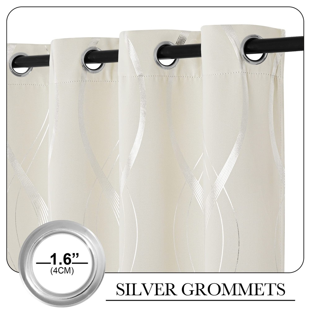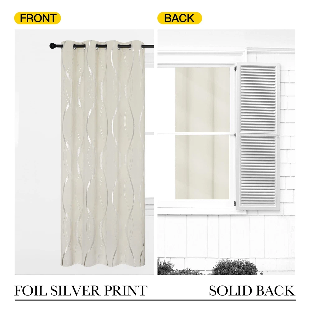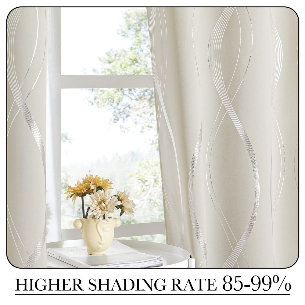 NICETOWN Blackout Curtain Panels 84 inches, Light Reducing Thermal Insulated Solid Grommet Drapes for Living Room/Nursery/Kids Room (Beige, Set of 2, 52 inches by 84 Inch) ELEGANT DESIGN: 2 panels per package. Each blackout curtain measures 52" wide x 84" long. The design of silver grommet (1.6 inch inner diameter) creates casual elegance for your house, which makes the curtains easy to install and slide. FOIL PRINTED: The classic silver striped wave lines pattern on the background gives the curtains an exclusive elegant look. With digital print technology, beautifully printed with the vibrant design shown. WISE BUDGET: Protect your furniture and floor exposed to the sun, while still balancing the room temperature in summer and winter. Privacy protection. The greatest benefit is to bring you a good night's sleep, making you full of energy every day. WIDE COMPATIBLITY: Don't bother looking for sheer curtains to match, choosing different styles of voile curtains with white color in NICETOWN store. Such curtain sets provide a more permanent harmonious window dressing, making your home lively. EASY CARE: Good quality finishing will withstand years of use. Hand washable and Wash the water temperature below 86℉. Mild detergent no bleaching. Low temperature ironing. Don’t use sharp things scratching curtains. Shipping We offer FREE shipping on all orders! We ship within Three business days of payment, usually sooner. We use a selection of shipping services such as UPS, FedEx, USPS etc. We only ship to the lower 48 states, no APO/FPO addresses or PO Boxes allowed. Local pickups and combined shipping options are not provided at this time. Return You can return a product for up to 30 days from the date you purchased it. Any product you return must be in the same condition you received it and in the original packaging. Please keep the receipt. Payment We accept payment by any of the following methods: PayPal Please pay as soon as possible after winning an auction, as that will allow us to post your item to you sooner! Feedback Customer satisfaction is very important to us. If you have any problem with your order, please contact us and we will do our best to make you satisfied. Contact Us If you have any queries, please contact us via ebay. We usually respond within 24 hours on weekdays. Please visit our eBay store to check out other items for sale! Thank you for shopping at our store.