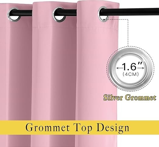 NICETOWN Crystal Pink Blackout Curtains for Bedroom - Grommet Blackout Thermal Insulated Room Darkening Sound Blocking Window Treatments for Girls Room/Teens, 2 Panels, W52 x L84 A1