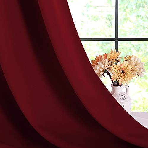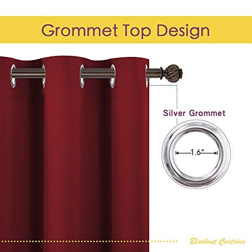 Product Page NICETOWN Christmas Window Curtains Blackout Drapes, Thermal Insulated Home Description: Features: ELEGANT DESIGN: 2 panels per package. Each Blackout Curtain measures 42" wide x 45" long. The design of silver grommet (1.6-inch inner diameter) creates casual elegance for your house, which makes the curtains easy to install and slide. AMAZING MATERIAL: Super heavy and soft Blackout Curtain Panels are very upmarket. Besides, 85%-99% light blocking, thermal insulated, soundproof, Fade-resistant, energy-efficient. Thread trimmed and wrinkle-free, both sides are the same color. WISE CHOICE: Protect your furniture and floors from sun exposure, while enhancing the energy efficiency of your home. Enjoy added privacy with our curtains, designed to ensure a restful night's sleep that leaves you energized each day. WIDE COMPATIBILITY: Don't bother looking for valance to match, choosing different styles of blackout valance with the same color in the store. Such curtain sets provide a more permanent harmonious window dressing. EASY MAINTENANCE: Machine or hand washable. Mild detergent no bleaching. Low-temperature ironing. Measure your pole and window size before you choosing curtains.