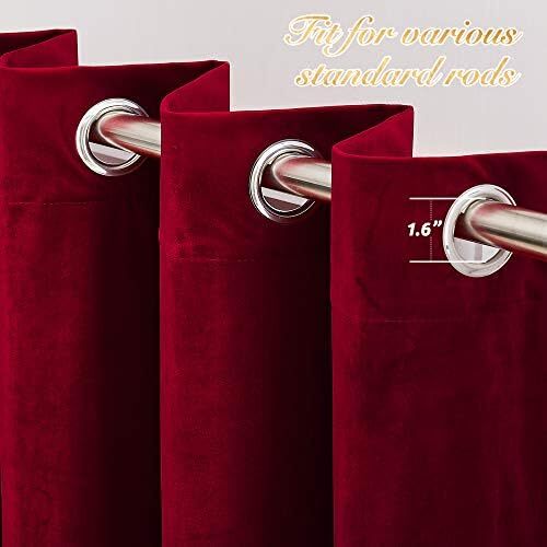 Free eBay listing template designed by dewiso.com NICETOWN Christmas Velvet Curtains, 108 inches Long, Red Velvet Drapes with Thermal Insulation for Holiday Season Home Decoration (Set of 2, Grommet Top Design) FREE AND FAST SHIPPING! About this item Velvet Ready Made: Package includes a pair of panels of W52"x L108"(132cm x274cm) each | W104"x L108"(264cm x 274cm) in total. The design of silver grommet (1.6 inch inner diameter) creates casual elegance for your house, which makes the curtains easy to install and slide. Length Adjustable: Don't worry if these velvet curtains are few shorter than your windows. You can hang these curtain panels with rings and hooks. That could be adjustable for height max 3 inches. Hooks space distance around 4-6 inches. Light Dimming: The curtains with dense fabric are capable of blocking 65% to 90% of natural light, effectively shielding the room from harmful UV rays. The darker color has better blackout effect. For 100% blackout shading, add the NICETOWN curtain liners(ASIN: B01KX4LVRC). More Advantages: Velvet curtains offer noise reduction, thermal insulated, and privacy protection. The dense fabric help to reduce external noise and regulate indoor temperature, creating a peaceful and cosy environment. They provide maximum privacy, protecting your personal space. Easy Care: Good quality finishing will withstand years of use. Machine washable and Wash the water temperature below 90℉. Mild detergent no bleaching. Quick ironing when needed. Please be free to contact us if you have any question with our products. Product We offer a 30-Day Return Policy on items which you are not completely satisfied with. You have the option for a full-refund or an exchange of the item. No returns are available on items shipped outside of the US . Shipping We offer Free Shipping to the US and ship within 2 business days of payment, usually sooner. We use UPS express shipping. That's why your products are usually delivered within 3 days . Contact We try our very best to make sure every customer is completely satisfied. If there's a problem , message us! We're happy to help. 24/7 live chat available.