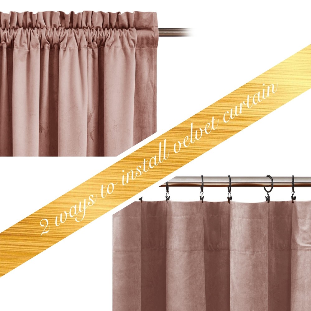 NICETOWN Dusty Pink Velvet Curtains (2 Panels, 52-inch Wide x 108-inch Long), Luxury and Soft Thermal Insulated Velvet Curtains for Film, Extra Long Window Curtains for Large Door Windows Curtains are so much more than just bits and pieces of fabric that are sewn together to prevent sunlight from entering your home, they go beyond that mundane function and provide additional benefits that do not meet the eye instantly.Light Blocking Energy Savers. Having the heavy, multi-layered microfiber blackout window curtains or drapes can make a world of a difference in reducing the amount of light that comes in from outside, which has green- conscious consumers excited about investing them as energy-efficient window treatments. A home insulated and remains warmer in wintertime relieves the strain on home heating and adds up to budget-noticeable energy saving of up to 25 percent.Sleep Soother n Noise Buffer. it's hard to get babies to take a rest during the day when the sun is streaming brightly through a bedroom window. Blackout curtains encourage the best possible sleep and most comfortable setting for day sleepers and the ones who have trouble falling asleep, by automatically darkening and lowering noise levels.Absolute Privacy n Relax. Not only that, but also make your resting zone truly blissful. They would be perfect for any home theater because there's nothing like watching your favorite movie in real darkness.Let NICETOWN Show Off Selection take you into full prep-for-the-holidays mode. Frame your windows with the soft elegance of jewel-toned velvet. Our Velvet Textured Panel is hand finished in luxurious microfiber a sumptuous drape, privacy and sun protection. This Velvet Curtain can be used for Stages, Dividers, Wall Covers, Windows, Home Theaters, Weddings, Churches, Photography, Studios, Shows, Room Restaurants, Business, Clubs, Bars, Convention, Special events or any place. Product Features Color: Dusty Pink Pattern Name: Solid Size: 52"W x 108"L (Pack of 2) Brand: NICETOWN MPN: NTRPVTSLD-ALL UPC: Does not apply EAN: Does not apply READY MADE: Package includes a pair of panels of W52"x L108"(132cm x 274cm) each | W104"x L108"(264cm x 274cm) in total. Constructed with dual rod pockets top design, these velvet curtains offer a sophisticated looking. LENGTH ADJUSTABLE: Don't worry if these velvet curtains are few shorter than your windows. You can hang these curtain panels with rings and hooks. That could be adjustable for height max 3 inches. Hooks space distance around 4-6 inches. SOUND DAMPENING: Plush velvety fabric helps you decrease few outside noise and can get the reflected sound be absorbed. With opulent tones, these luxurious velvet curtains frame your views in pure luxury. EASY CARE: Good quality finishing will withstand years of use. Machine washable and Wash the water temperature below 86F. Mild detergent no bleaching. Quick ironing when needed. Please be free to contact us if you have any question with our products. Open Box Condition Notice: Items are in perfect working condition. Items may have some minor signs of use, and the original protective wrapping may be absent or the item may be repackaged. All accessories will be included. Return Policy: You may return any item purchased within 30 days of receiving the shipment.