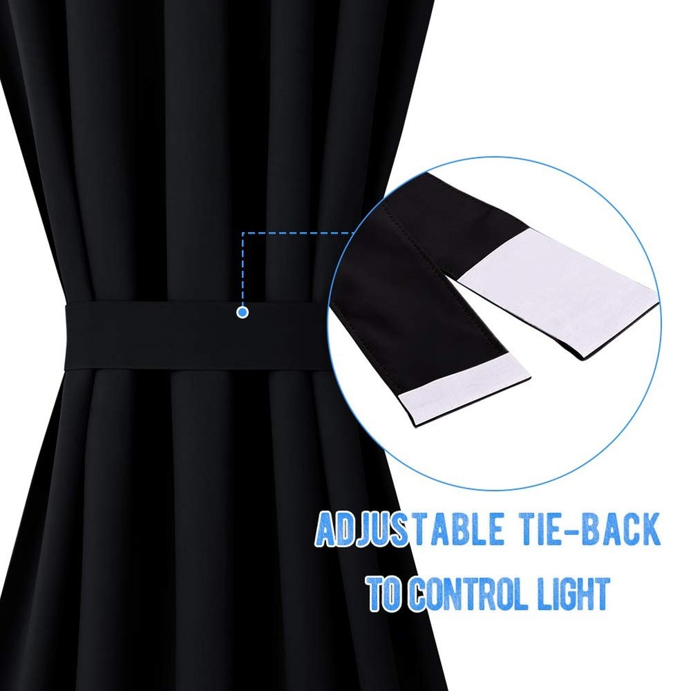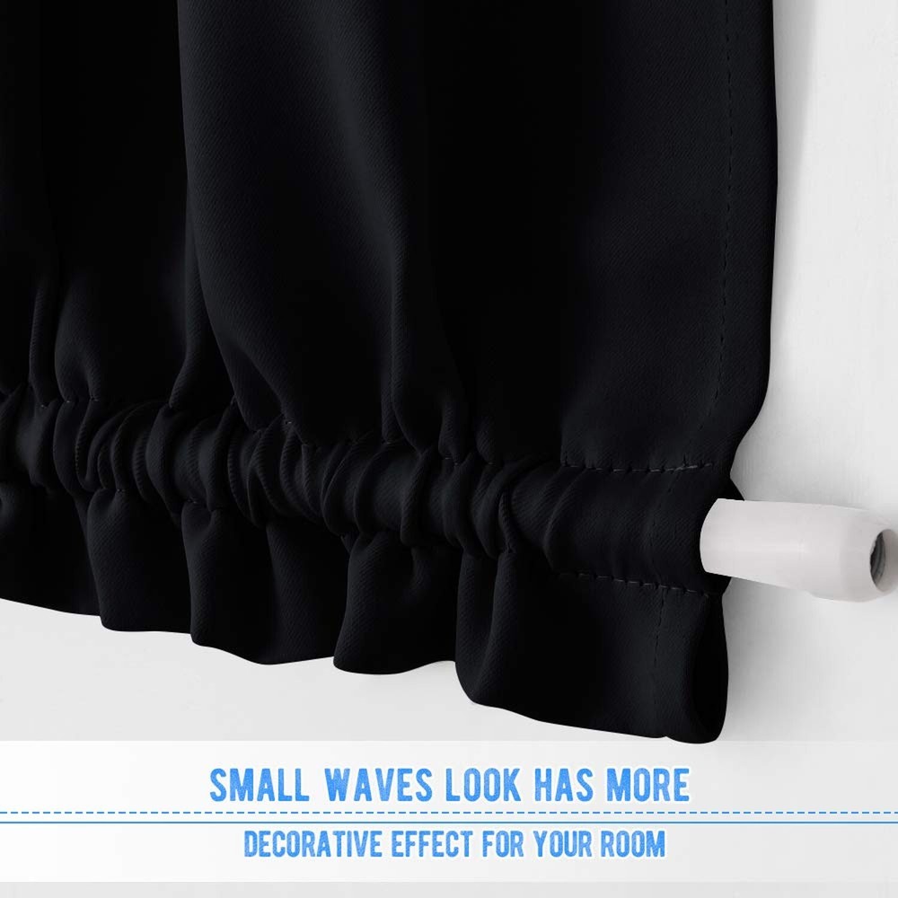 These curtains are fantastic! They block out light completely, making the room feel cozy and dark—perfect for sleeping in or watching movies. The fabric is thick and well-made, providing great insulation to keep the room cooler in summer and warmer in winter. The size fits French doors perfectly, and the black color looks sleek and modern. Easy to install with the included rod pockets or hooks. Highly recommend for anyone needing quality blackout curtains!