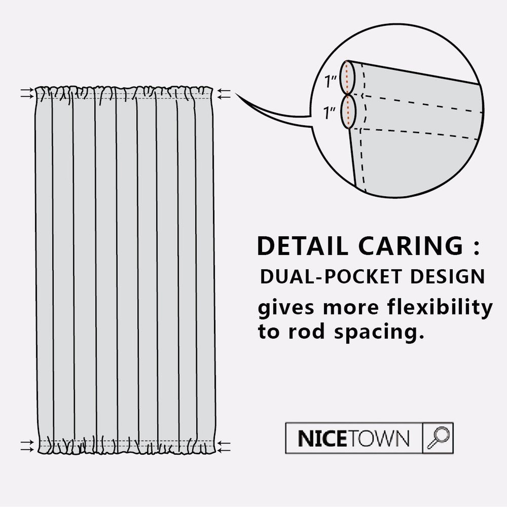 NICETOWN French Door Curtains Set of 2 - Blackout Curtain Patio Door Blinds Thermal Insulated Drapes for Glass Halloween Decor, 25W by 72L inches, Assorted Black Colors (2 Panels) Product Details Color: Black Size: 25"W x 72"L (Pack of 2) Brand: NICETOWN MPN: VCNTBLKFCDPN2-2572C05 UPC: 787966628379 EAN: 0787966628379 Brand: NICETOWN Color: Black Material: Polyester Product Dimensions: 72"L x 25"W Opacity: Blackout Inches Brand: NICETOWN Color: Black Material: Polyester Product Dimensions: 72"L x 25"W Opacity: Blackout Inches Special Feature: Soundproof, Wrinkle Free Room Type: Kitchen, Living Room, Bedroom, Home, Dining Room Style: French Pattern: Solid Theme: Door Curtains Curtain Form: Drapes Top Style: Rod Pocket Size: 25"W x 72"L (Pack of 2) Included Components: Curtain Panels Recommended Uses For Product: Home, Office, Bedroom, Home Theater, Living Room, Dining Room, Noise Reduction, Decorative Use Seasons: All Season Hanging Method: Grommet Item Weight: 0.95 Pounds Number of Items: 2 Product Care Instructions: Machine washable with mild detergent, no bleaching, and low-temperature ironing. Lining Description: Lined Package Weight: 0.71 Kilograms Water Resistance Level: Water Resistant Fabric Type: 100% Polyester Unit Count: 2.0 Count Occasion: Halloween Model Name: NTBLKFCDPN2-VC UPC: 787966628379 Manufacturer: NICETOWN Item Weight: 15.2 ounces Country of Origin: China Item model number: VCNTBLKFCDPN2-2572C05 Is Discontinued By Manufacturer: No Perfume: Unscented Assembly required: No Number of pieces: 2 Batteries required: No 100% Polyester PRODUCT INFO.: The package comes with 2 panels of door curtains. Each panel measuring 25 inches wide by 72 inches long comes with matching adjustable TIEBACK. 2 rod pockets(diameter: 1" each)on both top and bottom sides give the curtains a nice fit. NICE FUNCTION: Made of triple weave blackout material, these blackout door curtains can block 85%-95% harmful lights and UV rays out. By a special weaving way, the curtain prevents hot air in summer and cold wind in winter from entering the room. STYLISH&PRIVACY: Designed for glass / glazed doors. Pure color is suitable for most home decoration styles. Adjustable tie backs can flexibly control the light enter into the room, you can tie up for decorating room or full shade for keeping privacy. UNIQUE DESIGN: These door panels feature rod pockets top and bottom for easy installation. The dual rod pockets design on each end gives the curtain a nice fit, and offer you more install options for your needs Easy Care: NICETOWN blackout curtains are made to last. Machine washable in normal temperature water, use mild detergent, no bleaching, tumble or natural dry. Steam ironing can easily remove the wrinkles or any fold marks.