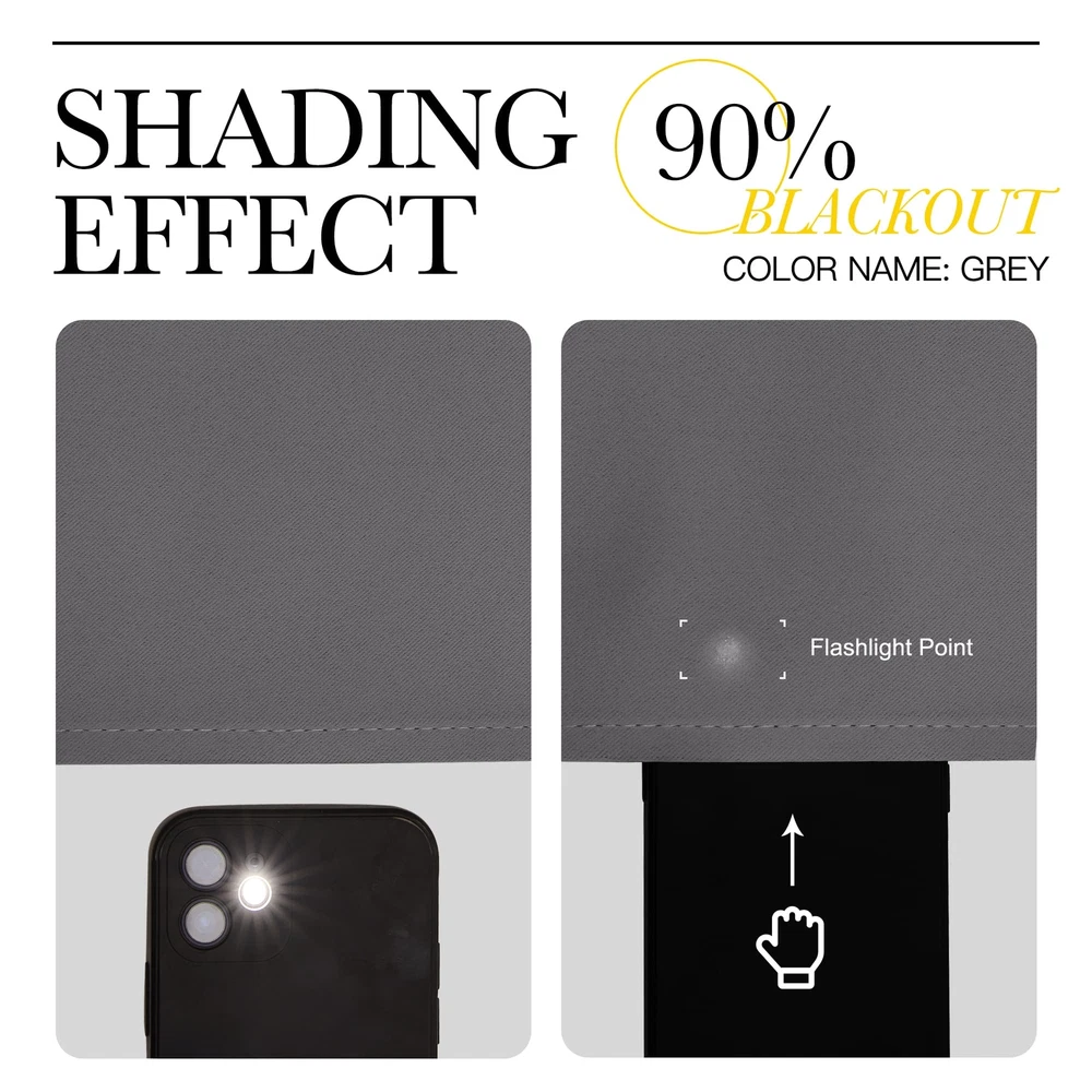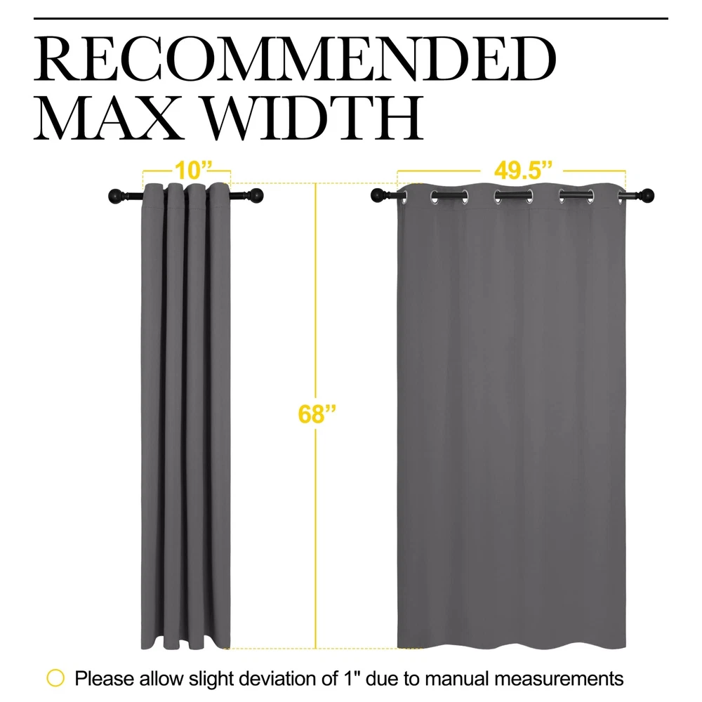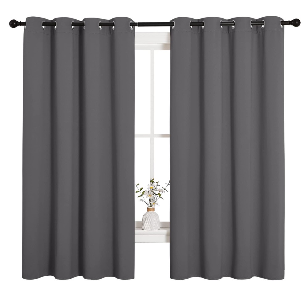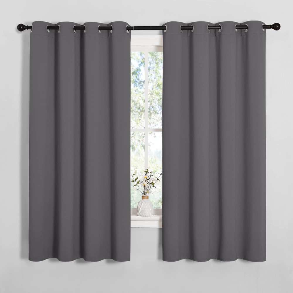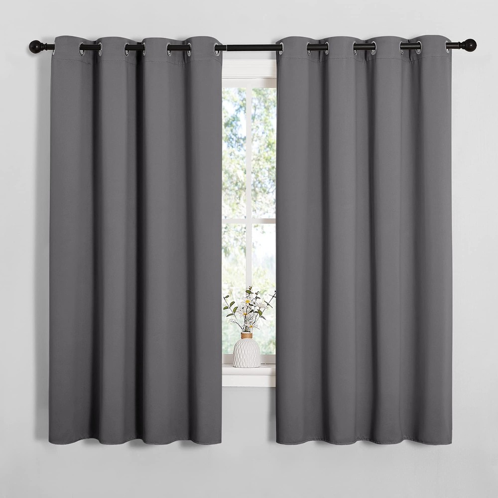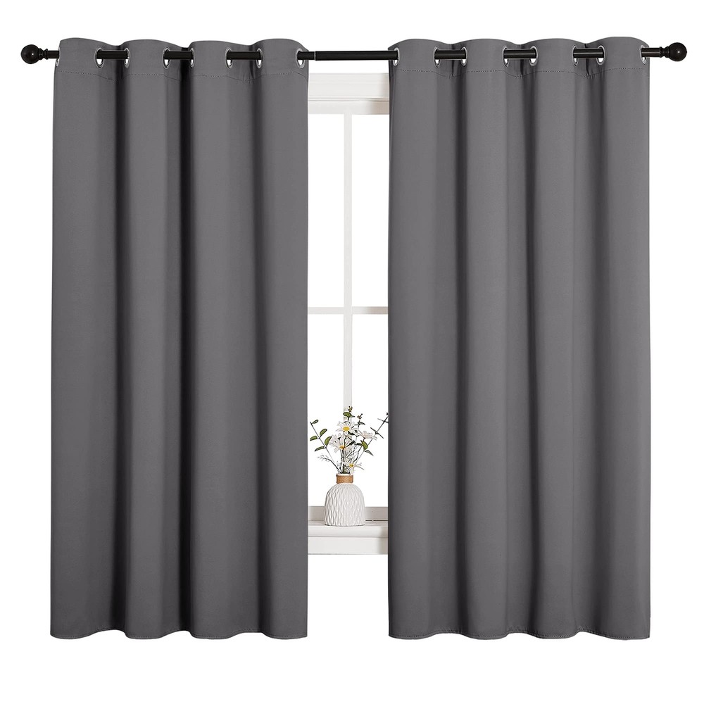 NICETOWN Grey Blackout Curtain Panels for Bedroom, Thermal Insulated Grommet Top Blackout Draperies and Drapes for Basement (2 Panels, W55 x L68-inch, Grey) NICETOWN Blackout Curtains are so much more than just bits and pieces of fabric that are sewn together to prevent sunlight from entering your home, they go beyond that mundane function and provide additional benefits that do not meet the eye instantly. Light Blocking Energy Savers. Having the heavy, multi-layered microfiber blackout window curtains or drapes can make a world of a difference in reducing the amount of light that comes in from outside, which has green-conscious consumers excited about investing them as energy-efficient window treatments. A home insulated and remains warmer in wintertime relieves the strain on home heating and reduces 25 percent energy budget at most. Sleep Soother n Noise Buffer. It's hard to get babies to take a rest during the day when the sun is streaming brightly through a bedroom window. Blackout curtains encourage the best possible sleep and most comfortable setting for day sleepers and the ones who have trouble falling asleep, by automatically darkening and lowering noise levels. Absolute Privacy n Relax. Not only that but also make your resting zone truly blissful. They would be perfect for any home theater and supply you with the enjoyment of watching TV in real darkness. If you are looking for great and cost-effective ways of re-inventing the look of your home, NICETOWN readymade curtains would be the game changer in your shopping cart. They are crafted for the topmost and luxury, coming with the strong grommet ring top for easy installation and smooth sliding over a rod. Each curtain panel is carefully ironed and ready to serve as your window dressing. What color do you like? MORE BENEFITS ELEGANT DESIGN: 2 panels per package. Each Blackout Curtain measures 55" wide x 68" long. The design of silver grommet (1.6-inch inner diameter) creates casual elegance for your house, which makes the curtains easy to install and slide. SERVE WELL: Curtains impede 85%-99% light and UV rays(Dark color curtains work well). Noise-reducing, better TV viewing thanks to the innovative triple weave technology. Thread trimmed and wrinkle-free, both sides are the same color. ENERGY SMART: Triple weave blackout fabric balances room temperature by insulating against summer heat and winter chill. Protect your furniture, floors, and artwork from the ravages of the sun, the drapes will pay for themselves off over time. WIDE COMPATIBILITY: Don't bother looking for valance to match, choosing different styles of blackout valance with the same color in the NICETOWN store. Such curtain sets provide a more permanent harmonious window dressing. EASY MAINTENANCE: Machine or hand washable. Mild detergent no bleaching. Low-temperature ironing. Measure your pole and window size before you choosing curtains.