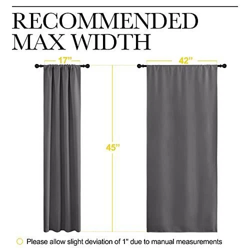 NettaHenton NICETOWN Grey Window Curtains for Bedroom - Home Decoration Thermal Insulated Description: NICETOWN Blackout Curtains are so much more than just bits and pieces of fabric that are sewn together to prevent sunlight from entering your home, they go beyond that mundane function and provide additional benefits that do not meet the eye instantly. Light Blocking Energy Savers. Having the heavy, multi-layered microfiber blackout window curtains or drapes can make a world of a difference in reducing the amount of light that comes in from outside, which has green-conscious consumers excited about investing them as energy-efficient window treatments. A home insulated and remains warmer in wintertime relieves the strain on home heating and reduces 25 percent energy budget at most. Sleep Soother n Noise Buffer. It's hard to get babies to take a rest during the day when the sun is streaming brightly through a bedroom window. Blackout curtains encourage the best possible sleep and most comfortable setting for day sleepers and the ones who have trouble falling asleep, by automatically darkening and lowering noise levels. Absolute Privacy n Relax. Not only that but also make your resting zone truly blissful. They would be perfect for any home theater and supply you with the enjoyment of watching TV in real darkness. If you are looking for great and cost-effective ways of re-inventing the look of your home, NICETOWN readymade curtains would be the game changer in your shopping cart. They are crafted for the topmost and luxury, coming with the strong grommet ring top for easy installation and smooth sliding over a rod. Each curtain panel is carefully ironed and ready to serve as your window dressing. What color do you like? Features: ELEGANT DESIGN: 2 panels per package. Each Blackout Curtain Panel measures 42 inches wide x 45 inches long. The NICETOWN drapery is constructed with rod pocket, fitting the curtain rod of your choice up to 2 inches in diameter, making the curtains easy to install and slide. LENGTH ADJUSTABLE: Don't worry if this blackout curtains are a few shorter than your windows. You can hang this curtain panels with rings and hooks. That could be adjustable for height max 3 inches. Hooks space distance around 4-6 inches. AMAZING MATERIAL: This unique, soft and heavy-duty blackout fabric is woven with three-layer construction. The middle layer of black yarns creates a curtain panel that is excellent for blocking out 85%-99% of light (Dark color works better on blocking light) while providing privacy. GOOD CHOICE: Perfect drapery option for anyone seeking to block daylight, take a nap, or keep sun glare off your TV. Besides, you can choose blackout valance and sheer curtains in the NICETOWN store to match. Such curtain sets provide a more permanent harmonious window dressing. Returns: In the unlikely event that you would like to return your purchase, we allow returns that are processed within 30 days of date of purchase. Please contact us for a return authorization and the return shipping address. Shipping costs are non-refundable. Payment: The following forms of payment are accepted: PayPal All major credit cards. Shipping: Our orders are generally handled and processed within 1-2 business days. Expedited shipping options are also available and can be selected during checkout. At this time, we only ship to physical addresses that are located within the 48 contiguous states of the United States of America. We are unable to ship to P.O. boxes, APO or FPO addresses, or international addresses directly. We are not responsible for undeliverable / incorrect addresses
