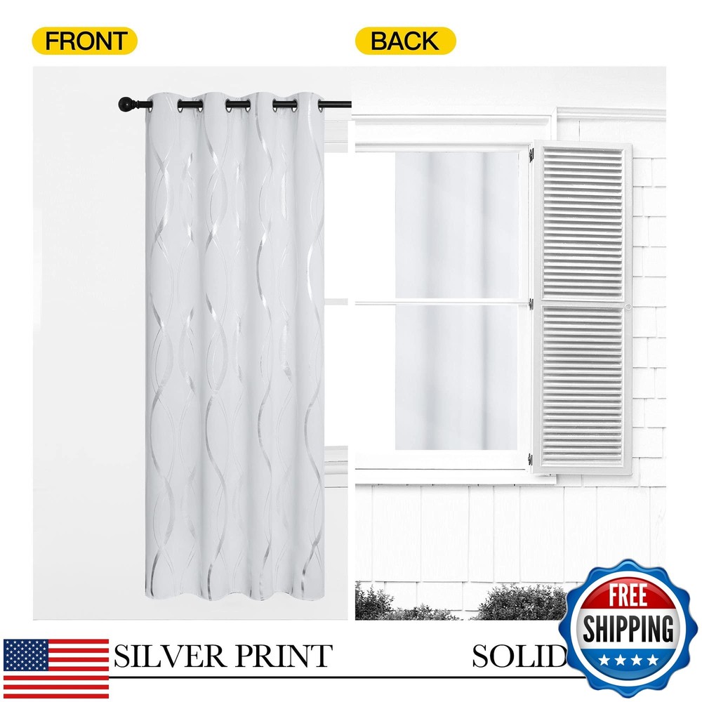 NICETOWN Greyish White Room Darkening Curtain Panels, 2 Panels, 34 by 54, Window Treatment Thermal Insulated Grommet Room Darkening Curtains/Panels/Drapes for Bedroom Features ELEGANT DESIGN: 2 panels per package. Each blackout curtain measures 34" wide x 54" long. The design of silver grommet (1.6 inch inner diameter) creates casual elegance for your house, which makes the curtains easy to install and slide. FOIL PRINTED: The classic silver striped wave lines pattern on the background gives the curtains an exclusive elegant look. With digital print technology, beautifully printed with the vibrant design shown. WISE BUDGET: Protect your furniture and floor exposed to the sun, while still balancing the room temperature in summer and winter. Privacy protection. The greatest benefit is to bring you a good night's sleep, making you full of energy every day. WIDE COMPATIBLITY: Don't bother looking for sheer curtains to match, choosing different styles of voile curtains with white color in NICETOWN store. Such curtain sets provide a more permanent harmonious window dressing, making your home lively. EASY CARE: Good quality finishing will withstand years of use. Hand washable and Wash the water temperature below 86℉. Mild detergent no bleaching. Low temperature ironing. Don’t use sharp things scratching curtains. Shipping Free & Fast Shipping: We offer free shipping to most of the USA with a normal delivery time of 3-7 days. However, due to the current situation, additional delivery time (up to 3 weeks) may be required for some items. Alternative Carriers: We may use alternative carriers (e.g., USPS, FedEx, UPS) to ensure your package arrives safely and on time. Due to the use of multiple carriers, we are unable to provide a tracking number automatically. Handling Time: Orders are processed and shipped within 1-2 business days of receiving cleared payment. Shipping Restrictions: Shipping to Alaska, Hawaii, Puerto Rico, Guam, and other US territories may incur shipping charges or delivery restrictions. Please contact us before ordering, or your order can be refunded/cancelled. State Restrictions: Certain items may not be shipped to California due to state regulations. Contact for Tracking Updates: If you require tracking updates or have any concerns about the delivery of your order, please feel free to contact us, and we will be happy to assist you. Return Policy 30-Day Hassle-Free Returns: If you are not completely satisfied with your purchase, you can return the item for free within 30 days of receiving it for a full refund or exchange. Easy Return Process: Contact us, and we will provide you with a prepaid return shipping label and detailed instructions. No Restocking Fee: There are no restocking fees for returns. However, the buyer is responsible for return shipping costs if the return is not due to a seller's error. Refund Processing: Refunds will be processed within 1 business day of receiving the returned item in its original condition. Payment We accept all major credit cards, PayPal, and Apple Pay for your convenience. Your payment information is secure and encrypted to ensure a safe and seamless transaction. Please complete your payment within 3 days of purchase to avoid any delays in shipping. Feedback Your feedback is extremely important to us. We strive to provide the best products and customer service possible. If you are satisfied with your purchase, please take a moment to leave us a positive review. If you have any concerns or issues with your order, please contact us before leaving negative feedback. We are committed to resolving any problems and ensuring your satisfaction. Contact Us If you have any questions or concerns, please feel free to reach out to our customer support team. You can contact us through the eBay messaging system. We are available Monday to Friday, 9:00 am to 5:00 pm EST, and we will do our best to respond to your inquiry within 24 hours. Thank you for supporting our small family business!