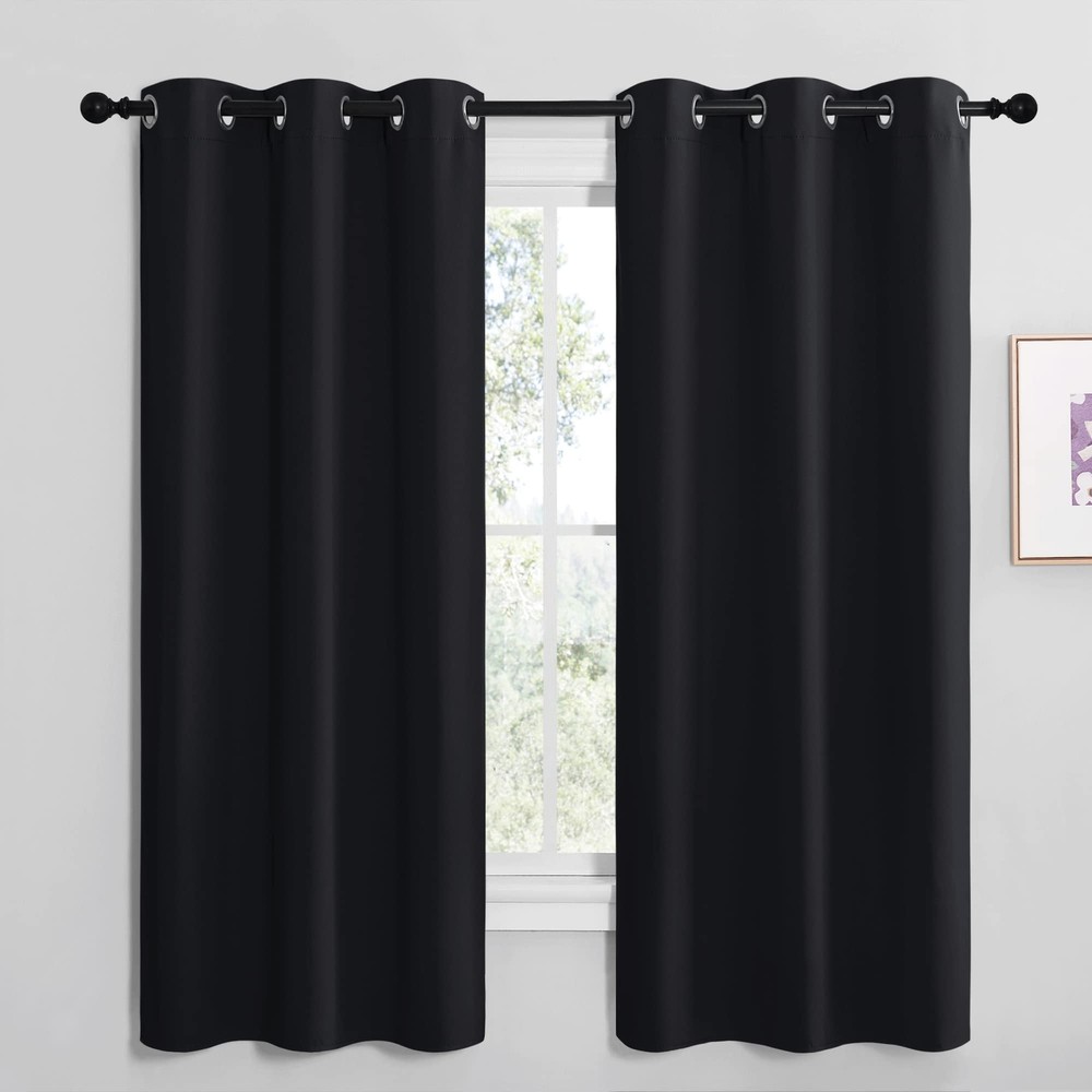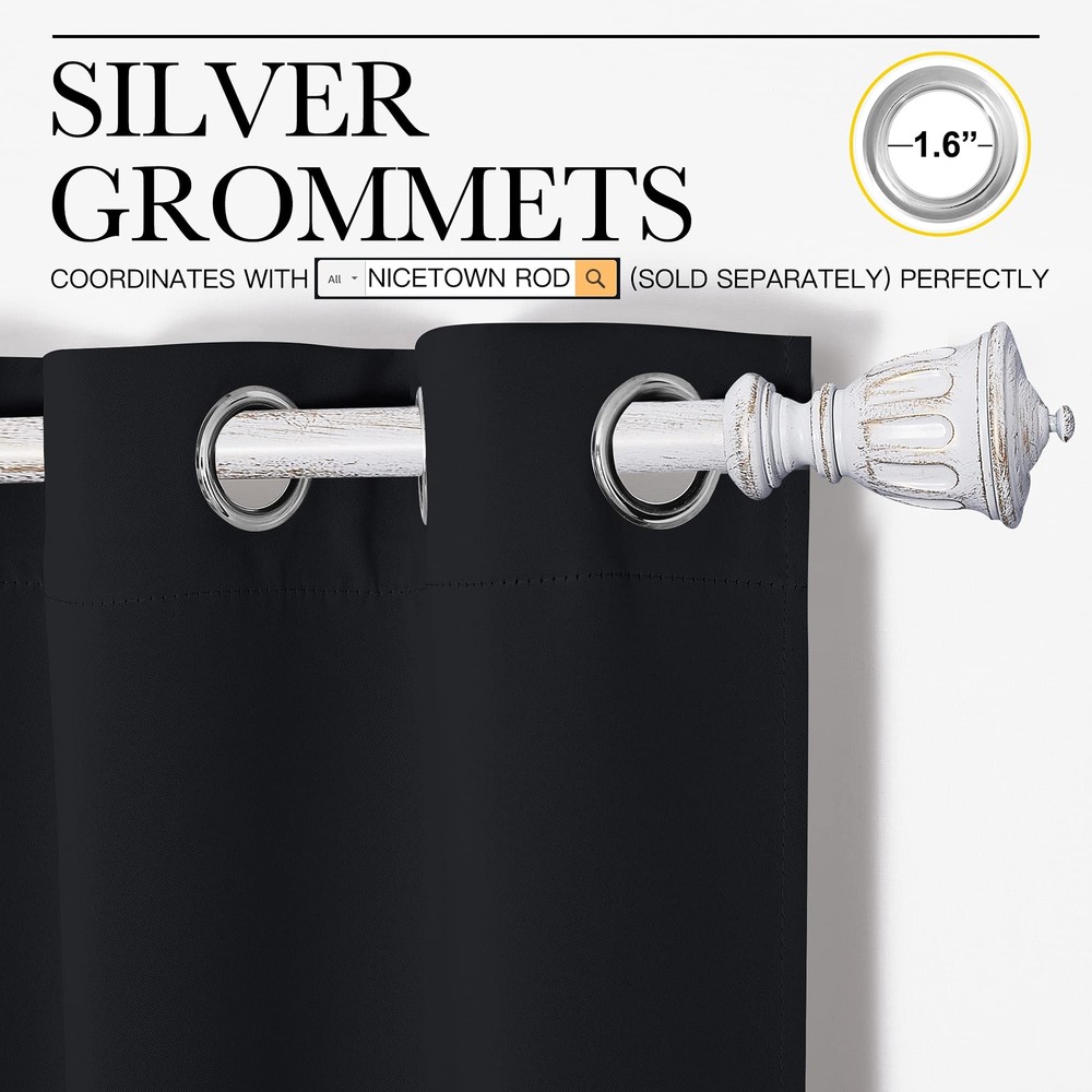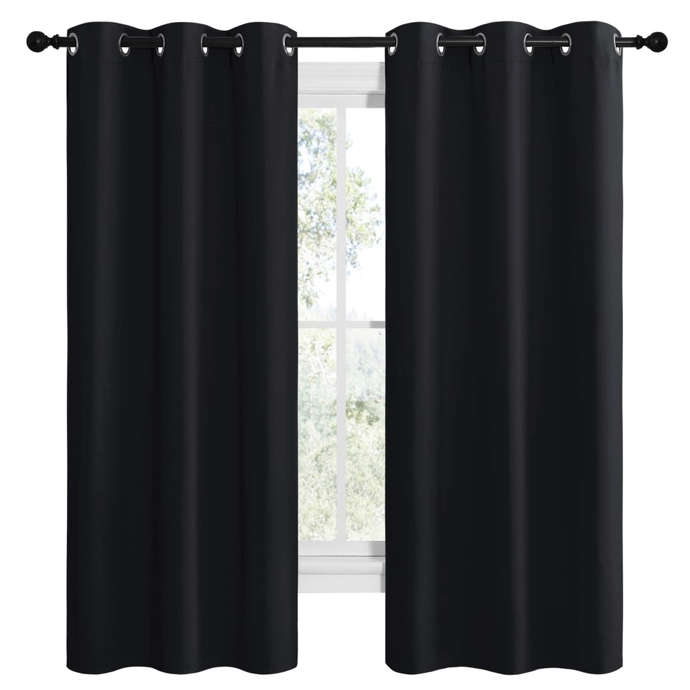 NICETOWN Halloween Bathroom Blackout Thermal Curtains and Drapes, Black Solid Thermal Insulated Grommet Blackout Drapery Panels for Window (2 Panels, 42 inches Wide by 68 inches Long, Black) NICETOWN Blackout Curtains are so much more than just bits and pieces of fabric that are sewn together to prevent sunlight from entering your home, they go beyond that mundane function and provide additional benefits that do not meet the eye instantly. Light Blocking Energy Savers. Having the heavy, multi-layered microfiber blackout window curtains or drapes can make a world of a difference in reducing the amount of light that comes in from outside, which has green-conscious consumers excited about investing them as energy-efficient window treatments. A home insulated and remains warmer in wintertime relieves the strain on home heating and reduces 25 percent energy budget at most. Sleep Soother n Noise Buffer. It's hard to get babies to take a rest during the day when the sun is streaming brightly through a bedroom window. Blackout curtains encourage the best possible sleep and most comfortable setting for day sleepers and the ones who have trouble falling asleep, by automatically darkening and lowering noise levels. Absolute Privacy n Relax. Not only that but also make your resting zone truly blissful. They would be perfect for any home theater and supply you with the enjoyment of watching TV in real darkness. If you are looking for great and cost-effective ways of re-inventing the look of your home, NICETOWN readymade curtains would be the game changer in your shopping cart. They are crafted for the topmost and luxury, coming with the strong grommet ring top for easy installation and smooth sliding over a rod. Each curtain panel is carefully ironed and ready to serve as your window dressing. What color do you like? MORE BENEFITS ELEGANT DESIGN: 2 panels per package. Each Blackout Curtain measures 42" wide x 68" long. The design of silver grommet (1.6-inch inner diameter) creates casual elegance for your house, which makes the curtains easy to install and slide. MULTI-FUNCTION: Super heavy and soft Blackout Curtain Panels are very upmarket. Besides, 85%-99% light blocking, thermal insulated, soundproof, Fade-resistant, energy-efficient. Thread trimmed and wrinkle-free, both sides are the same color. ENERGY SMART: Triple weave blackout fabric balances room temperature by insulating against summer heat and winter chill. Protect your furniture, floors, and artwork from the ravages of the sun, the drapes will pay for themselves off over time. WIDE COMPATIBILITY: Don't bother looking for valance to match, choosing different styles of blackout valance with the same color in the NICETOWN store. Such curtain sets provide a more permanent harmonious window dressing. EASY TO MAINTAIN: NICETOWN blackout curtains are made to last. Machine washable in cold water, tumble dry. Quick ironing or steam clean when needed. Visiting the NICETOWN store, find out your favorite curtains.
