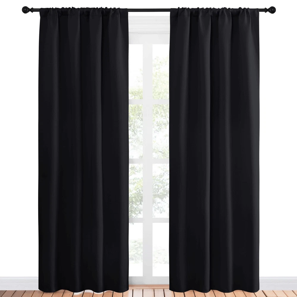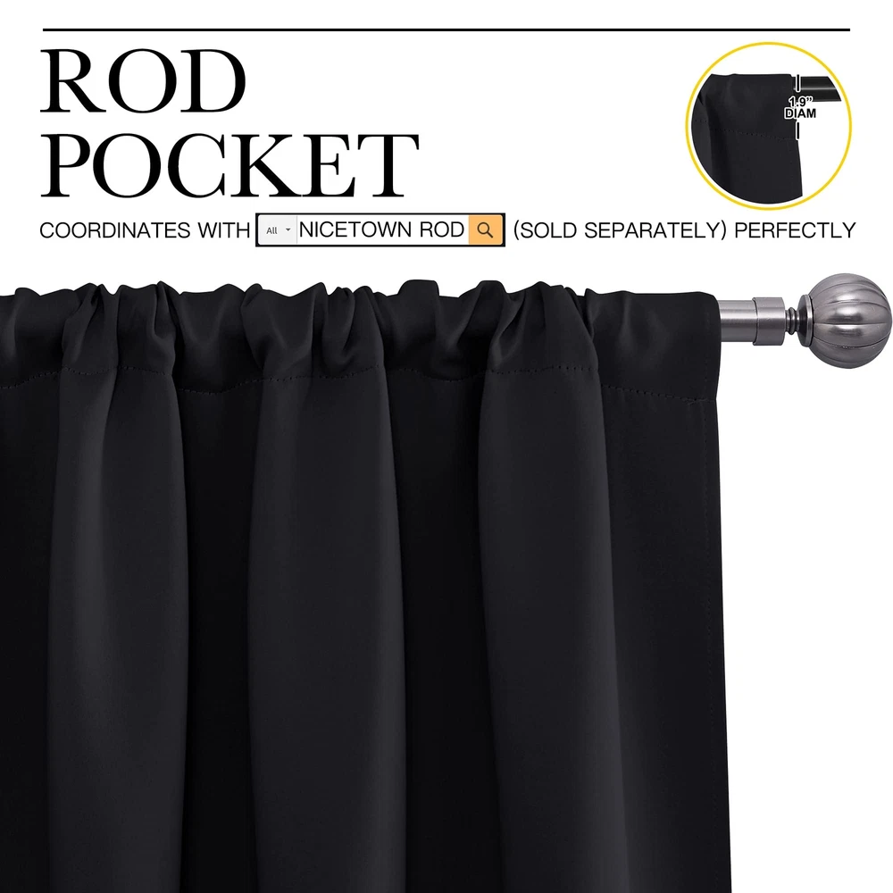 NICETOWN Halloween Living Room Blackout Shades - All Season Rod Pocket Thermal Insulated Solid Blackout Curtains/Drapes for Living Room (Set of 2, 42 inches by 84 Inch, Black) ELEGANT DESIGN: 2 panels per package. Each Blackout Curtain Panel measures 42 inches wide x 84 inches long. Super heavy and soft Blackout Curtain Panels can block 85%-99% light and UV rays. Thread trimmed and wrinkle-free, both sides are the same color. UNIQUE DESIGN: Hang the curtains on a curtain rod through the rod pocket or with rings and hooks. 2" opening top pocket creates pleats easily. As a general rule, for proper fullness panels should measure 2-3 times the width of your window. MULTIFUNCTIONS: Protect your furniture and floor exposed to the sun, while still helping you balance tempurature on heating and cooling your home. Privacy protection. The greatest benefit is to bring you a good night's sleep, making you full of energy every day. GOOD CHOICE: Perfect drapery option for anyone seeking to block daylight, take a nap, or keep sun glare off your TV. Besides, you can choose blackout valance and sheer curtains in the NICETOWN store to match. Such curtain sets provide a more permanent harmonious window dressing. EASY MAINTENANCE: Machine or hand washable. Mild detergent no bleaching. Low-temperature ironing. Measure your pole and window size before you choosing curtains. Shipping We offer FREE shipping on all orders! We ship within Three business days of payment, usually sooner. We use a selection of shipping services such as UPS, FedEx, USPS etc. We only ship to the lower 48 states, no APO/FPO addresses or PO Boxes allowed. Local pickups and combined shipping options are not provided at this time. Return You can return a product for up to 30 days from the date you purchased it. Any product you return must be in the same condition you received it and in the original packaging. Please keep the receipt. Payment We accept payment by any of the following methods: PayPal Please pay as soon as possible after winning an auction, as that will allow us to post your item to you sooner! Feedback Customer satisfaction is very important to us. If you have any problem with your order, please contact us and we will do our best to make you satisfied. Contact Us If you have any queries, please contact us via ebay. We usually respond within 24 hours on weekdays. Please visit our eBay store to check out other items for sale! Thank you for shopping at our store.