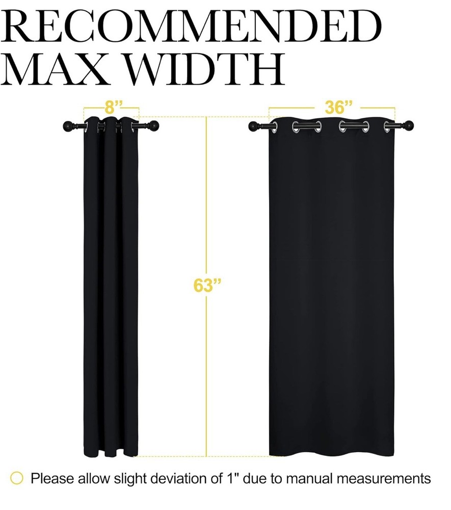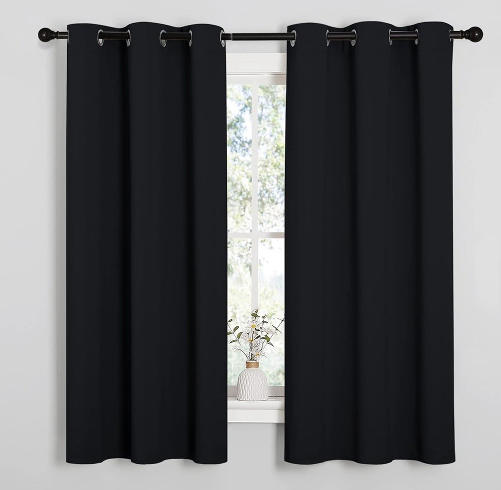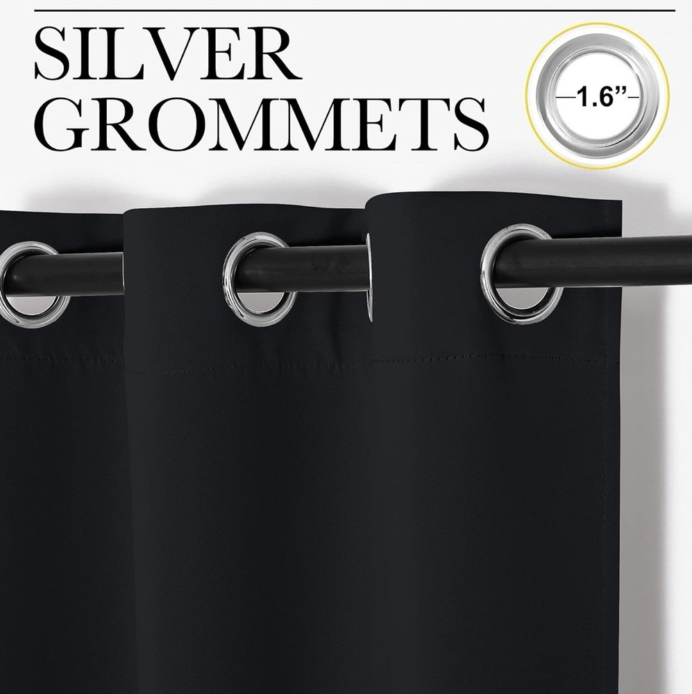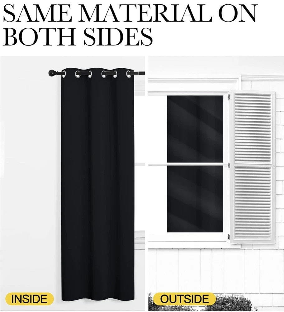 Just got these blackout curtains and they're amazing! The thick fabric blocks out all light, making my room pitch-black for perfect sleep. The grommets slide smoothly, and installation was super easy. They feel high-quality, look sleek, and help with temperature control too. Game changer for movie nights or sleeping in - worth every penny!