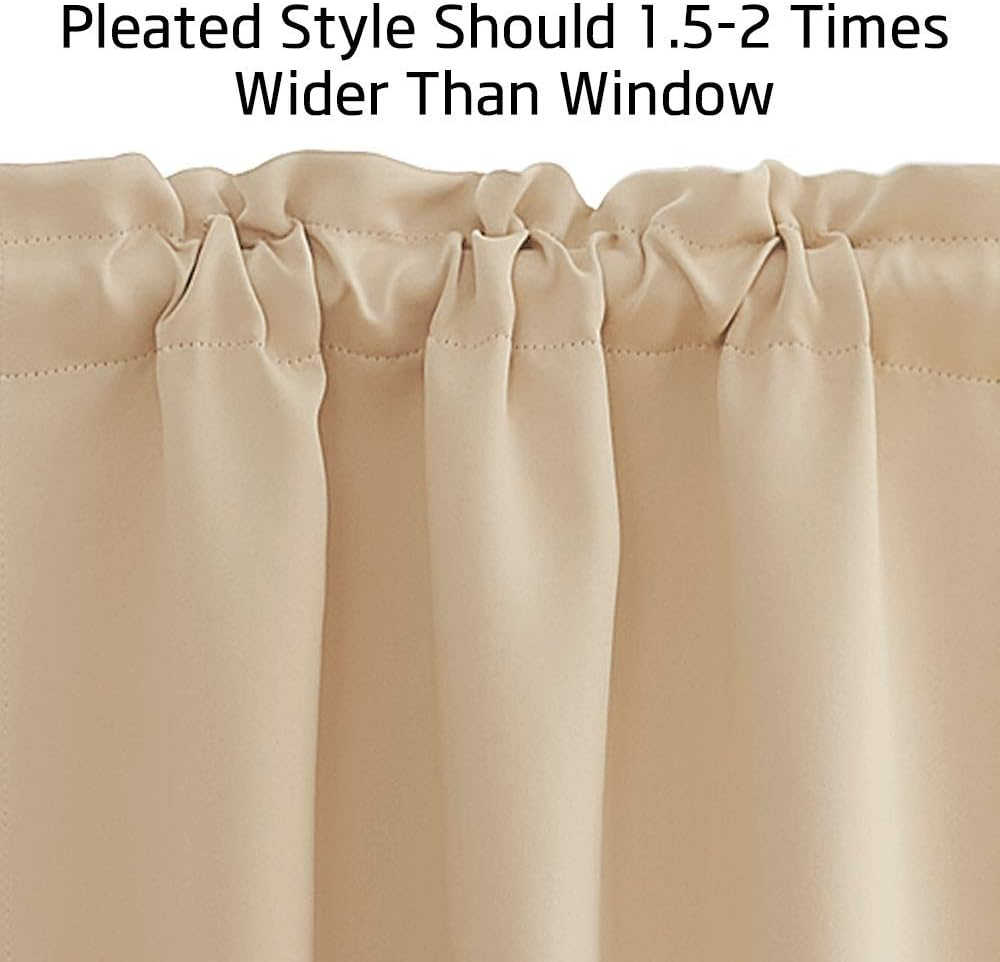 Store New Arrivals Add to Favorite View Feedback Contact NICETOWN RV Curtains for Small Window, Light Bloacking Thermal Insulated Elegant Rod Pocket Privacy Curtain Tiers for Home Office Thanksgiving, Set of 2, 42" Wide by 24" Long, 1 Pair Description Item model number NICETOWN_Blackout_Petit Style Modern Number of Items 2 Pattern Solid Country of Origin China Package Weight 0.42 Kilograms Theme valances Opacity 0.5 Inches Room Type Kitchen, Living Room, office, Nursery, cafe bar Product Dimensions 24"L x 42"W Batteries required No Brand NICETOWN Material Polyester Top Style Rod Pocket, Rod, Pocket Model Name NTBLKRPKCH2-292436 Seasons All Season Lining Description Lined with same fabric Included Components Shade included Closure Type Rod pocket Curtain Form Window Tier Curtain Water Resistance Level Not Water Resistant Perfume Unscented Item Weight 14.1 ounces Size 42"W x 24"L (Pack of 2) Compatible with Rod Size 3 Inches Occasion Thanksgiving Special Feature Window Treatments, Blackout, Bagged Antibacterial treatment Thermal Hanging Method Rod Pocket Color Biscotti Beige Recommended Uses For Product Versatile; suitable for use in various rooms including kitchen, bathroom, laundry room, studio, etc. Manufacturer NICETOWN Fabric Type 100% Polyester Product Care Instructions Machine Wash Number of pieces 2 100% Polyester READY MADE: Set includes 2 panels of 42" wide x 24" length rod pocket (2" opening pocket) valance each panel. As a general rule, for proper fullness panels should measure 2-3 times the width of your window. UNIQUE DESIGN: Hang the curtains on a curtain rod through the rod pocket, 2" opening pocket create pleats easily. Hang these voile curtain panels with rings and hooks. That could be adjustable for height max 3 inches. Hooks space distance around 4-6 inches. STYLISH & PRIVACY: Rod pocket valance curtain provides absolute privacy for your indoor life, and protect your furniture and art pieces from fading when the bright sun streams in. This valance completes an elegant and smart look for your living space. WIDE COMPATIBILITY: Use the tier to cover the lower portion of windows or used alone on short windows, they can blend in easily with your kitchen, bathroom, laundry room, studio or whatever you used them. EASY TO CARE: Machine washable in cold water ( make sure the water temperature is lower than 91℉ ), tumble dry, quick iron or steam clean when it is necessary. Easy use of easy care. Product Description Other Options from NICETOWN Add to Cart Rod Pocket Valances Customer Reviews 4.6 out of 5 stars 1,651 4.6 out of 5 stars 3,270 4.6 out of 5 stars 3,178 4.4 out of 5 stars 4,347 — 4.6 out of 5 stars 4,200 4.4 out of 5 stars 39 Price $12.86 $ 12 . 86 $11.89 $ 11 . 89 $13.99 $ 13 . 99 $20.12 $ 20 . 12 — $15.95 $ 15 . 95 $20.12 $ 20 . 12 Matrial Blackout Material Blackout Material Blackout Material Blackout Material Blackout Material Blackout Material Faux Linen Material Style Rod Pocket Rod Pocket Rod Pocket Rod Pocket Rod Pocket Grommet Grommet Privacy ✔✔✔ ✔✔✔ ✔✔✔ ✔✔✔ ✔✔✔ ✔✔✔ ✔✔✔ Machine Wash ✔ ✔ ✔ ✔ ✔ ✔ ✔ Package 2 Panels 1 Panel 1 Panel 2 Panels 2 Panels 2 Panels 2 Panels ABOUT US We offer the best prices around on high quality products. Our E-store includes media such as books, movies, music and games while offering electronics, toys, sporting apparel, clothing, tools, general home, garden items and more. SHIPPING We are always working hard to ensure your package arrives as soon as possible. Please understand that some factors like weather, high postal traffic, and the performance of shipping companies are outside of our control. We offer free shipping to the lower 48 states and ship within 2 business days of payment, usually sooner. We do not accept P.O. Boxes. Please provide a physical address. RETURNS We offer a 30-Day Return Policy on items which you are not completely satisfied with. You have the option for a full-refund or an exchange of the item. No returns are available on items shipped outside of the USA. PAYMENT We accept PayPal. CONTACT US This page content is yet to come Please ad us to your favorite seller and visit again later Thank You CUSTOMER SATISFACTION We try our very best to make sure every customer is completely satisfied. If there's a problem, message us! We're happy to help.