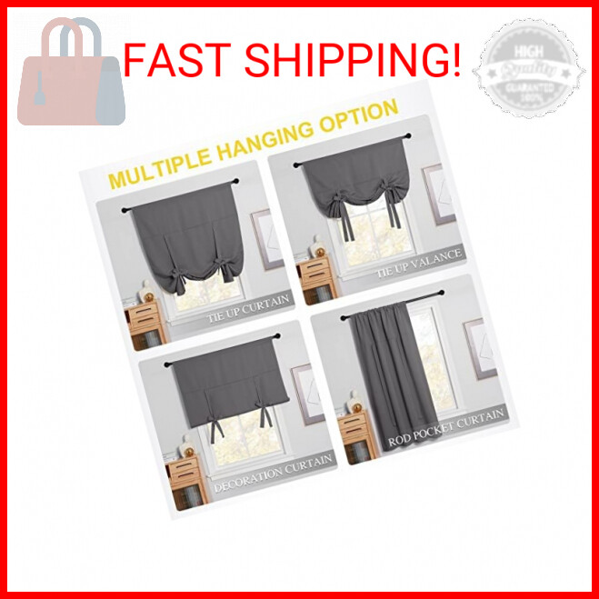 WELCOME TO THE SHOP NICETOWN Thermal Insulated Blackout Short Curtain - Bathroom Curtain Gray Tie Up Shade for Small Window, Window Valance Balloon Roman Blind (Rod Pocket Panel, 46 inches W x 63 inches L) - 100% Polyester - READY MADE: Package includes 1 panel Tie Up Shade with 46" width x 63" length (117cm x 161cm), same color as front. 3" pocket fits various standard or decorative curtain rod/pole. - SERVE WELL: Tie up the shades to let in more natural light and enhance the look of your windows or untie, for more coverage and privacy. Curtains impede 85%-99% light and UV rays (dark color curtains work well). - EASY ADJUST: Tie up shade(ties begin a little down the curtain but only about a 1/4) can be tied to the point of the connecting seam, and can be adjusted to the height you desire. - HOME DECORATION: The sophisticated designs allow you to decorate your windows with great styles, perfect for the small window in the kitchen, bathroom, living room and bedroom. - EASY TO MAINTAIN: NICETOWN blackout curtains are made to last. Machine washable in cold water, tumble dry. Quick ironing or steam clean when needed. Visiting the NICETOWN store, find out favorite curtains. Payments We accept the following payment methods PayPal Please pay as soon as possible after winning an auction, this will allow for quicker shipping times! Returns We accept returns. You can return unopened items in the original packaging within 30 days of your purchase with receipt or proof of purchase. If 30 days or more have passed since your purchase, we cannot offer you a refund or an exchange. Upon receipt of the returned item, we will fully examine it and notify you via email, within a reasonable period of time, whether you are entitled to a return. If you are entitled to a return, we will refund your purchase price and a credit will automatically be applied to your original method of payment. Only regular priced items may be refunded. Sale items are non-refundable. Shipping Shipment processing time All orders are processed within 2-3 business days. Orders are not shipped or delivered on weekends or holidays. If we are experiencing a high volume of orders, shipments may be delayed by a few days. Please allow additional days in transit for delivery. If there will be a significant delay in shipment of your order, we will contact you via email or telephone. Shipping rates & delivery estimates Shipping charges for your order will be calculated and displayed at checkout.