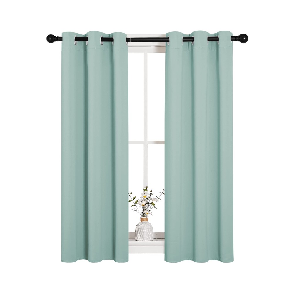 NICETOWN Thermal Insulated Curtains Blackout Draperies, Aqua Blue, Set of 2, 29 by 40 inches Long Window Treatment Solid Grommet Room Darkening Drape Panels for Bedroom Product Details Color: Aqua Size: 29 in x 40 in (W x L) Brand: NICETOWN MPN: NICETOWN_Blackout_Petit UPC: Does not apply EAN: Does not apply Brand: NICETOWN Color: Aqua Material: Polyester, Polyester Blend Product Dimensions: 40"L x 29"W Opacity: Blackout Brand: NICETOWN Color: Aqua Material: Polyester, Polyester Blend Product Dimensions: 40"L x 29"W Opacity: Blackout Special Feature: Window Treatments, Portable, Protection Of Privacy, Adjust The Light, Blackout, Bagged Room Type: Bedroom Style: Country Rustic Pattern: Solid Top Style: Grommet Size: 29 in x 40 in (W x L) Included Components: Grommet, Valance, 2 Panels Recommended Uses For Product: Indoor Seasons: Winter Number of Items: 2 Product Care Instructions: Machine Wash Package Weight: 0.49 Kilograms Fabric Type: Polyester Unit Count: 1.0 Count Compatible with Rod Size: 1.6 Inches Model Name: 2 Manufacturer: NICETOWN Item Weight: 1.08 pounds Country of Origin: China Item model number: NICETOWN_Blackout_Petit Antibacterial treatment: Thermal Perfume: Unscented Number of pieces: 2 Batteries required: No Import: Imported Polyester Imported ELEGANT DESIGN: 2 panels per package. Each Blackout Curtain measures 29" wide x 40" long. The design of silver grommet (1.6-inch inner diameter) creates casual elegance for your house, which makes the curtains easy to install and slide. MULTI-FUNCTION: Super heavy and soft Blackout Curtain Panels are very upmarket. Besides, 85%-99% light blocking, thermal insulated, soundproof, Fade-resistant, energy-efficient. Thread trimmed and wrinkle-free, both sides are the same color. WISE BUDGET: Protect your furniture and floor exposed to the sun, while still helping you save money on heating and cooling your home. Privacy protection. The greatest benefit is to bring you a good night's sleep, making you full of energy every day. WIDE COMPATIBILITY: Don't bother looking for valance to match, choosing different styles of blackout valance with the same color in the NICETOWN store. Such curtain sets provide a more permanent harmonious window dressing. EASY TO MAINTAIN: NICETOWN blackout curtains are made to last. Machine washable in cold water, tumble dry. Quick ironing or steam clean when needed. Visiting the NICETOWN store, find out your favorite curtains.