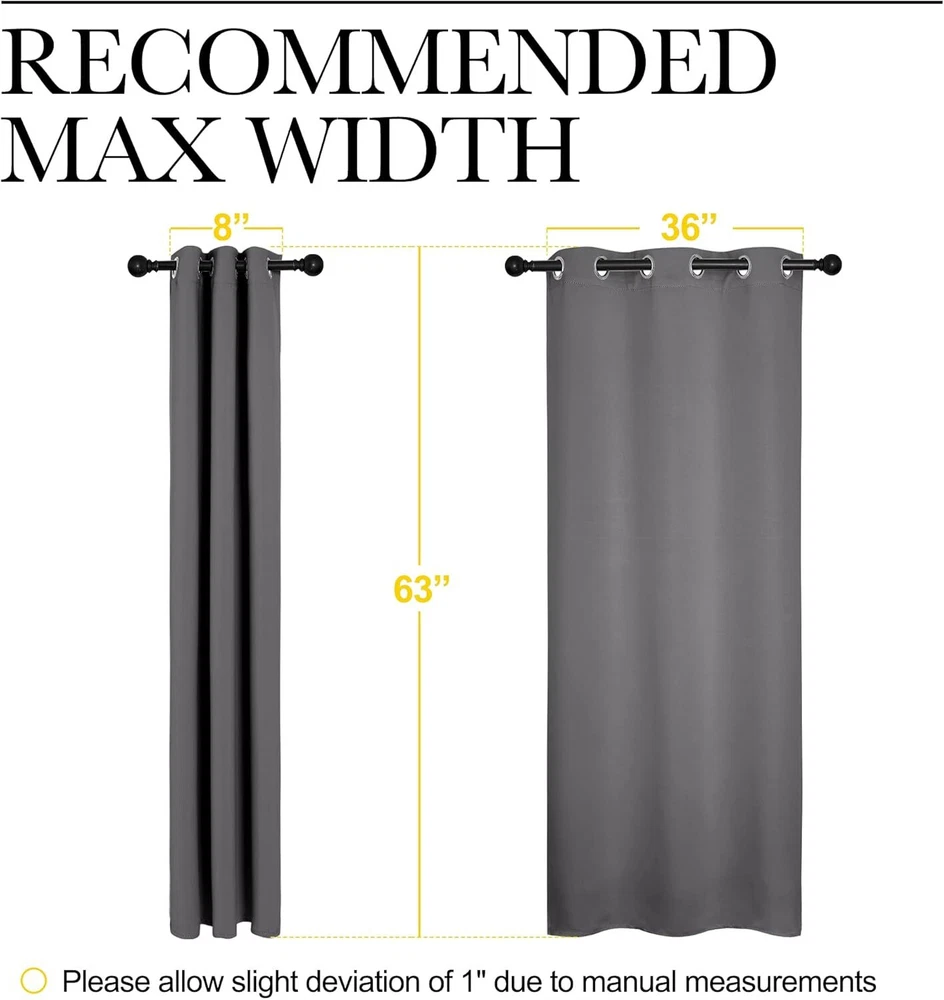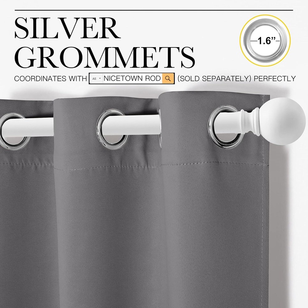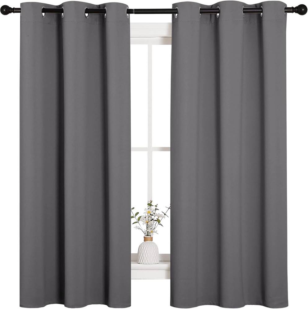 NICETOWN Thermal Insulated Grommet Blackout 42"W x 63"L (Pack of 2), Grey Product Details Brand: NICETOWN Color: Grey Material: Polyester, Polyester Blend Product Dimensions: 63"L x 42"W Opacity: Blackout Special Feature: Thermal Insulated Room Type: Kitchen, Bedroom, Living Room, Home Office, Dining Room Style: Modern Pattern: Solid Theme: Modern Curtain Form: Drapes Top Style: Grommet Size: 42"W x 63"L (Pack of 2) Included Components: Eyelets, Pole Recommended Uses For Product: blocking light in bedrooms for better sleep, insulating rooms for energy efficiency, reducing noise levels in living spaces, providing privacy in homes Specific Uses For Product: Window treatments Seasons: Winter, Summer Hanging Method: Grommet Item Weight: 1 Kilograms Closure Type: Grommet Number of Items: 2 Product Care Instructions: Machine washable in cold water, tumble dry. Package Weight: 1.15 Kilograms Fabric Type: Polyester Unit Count: 2.0 Count Compatible with Rod Size: 1.6 Inches Model Name: NTGMBLKSLD2-42ALL3 Manufacturer: NICETOWN Item Weight: 2.2 pounds Country of Origin: China Item model number: FBA_NTGMBLKSLD24263C1 Is Discontinued By Manufacturer: No Perfume: Unscented Number of pieces: 2 Batteries required: No Polyester READY MADE: Set includes 2 BLACKOUT CURTAINS PANELS of 42" wide x 63" length with 6 grommets top each. Quality fabric without liner feels soft and heavy. SERVE WELL: Curtains impede 85%-99% light and UV rays(Dark color curtains work well). Noise-reducing, better TV viewing thanks to the innovative triple weave technology. ENERGY SMART: Triple weave blackout fabric balances room temperature by insulating against summer heat and winter chill. Protect your furniture, floors, and artwork from the ravages of the sun, the drapes will pay for themselves off over time. GOOD TO GO: Thread trimmed and wrinkle-free, ring (1.6-inch inner diameter) fits easily with standard curtain rods. All sets for you to put them up right away. EASY TO MAINTAIN: NICETOWN blackout curtains are made to last. Machine washable in cold water, tumble dry. Quick ironing or steam clean when needed. Visiting the NICETOWN store, find out your favorite curtains.