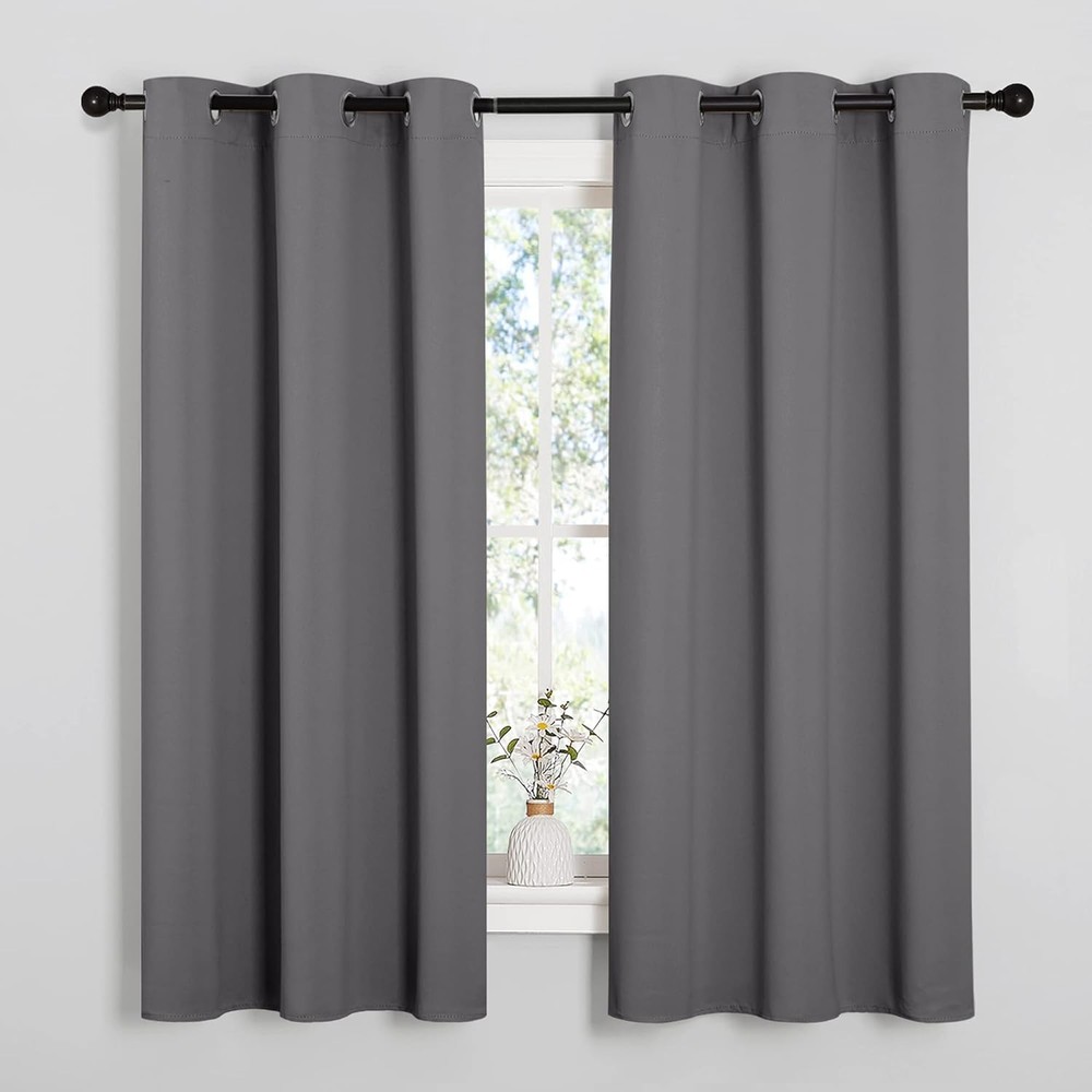 NICETOWN Thermal Insulated Grommet Blackout 42"W x 63"L (Pack of 2), Grey Product Details Brand: NICETOWN Color: Grey Material: Polyester, Polyester Blend Product Dimensions: 63"L x 42"W Opacity: Blackout Special Feature: Thermal Insulated Room Type: Kitchen, Living Room, Bedroom, Home Office, Dining Room Style: Modern Pattern: Solid Theme: Modern Curtain Form: Drapes Top Style: Grommet Size: 42"W x 63"L (Pack of 2) Included Components: Eyelets, Pole Recommended Uses For Product: blocking light in bedrooms for better sleep, insulating rooms for energy efficiency, reducing noise levels in living spaces, providing privacy in homes Specific Uses For Product: Window treatments Seasons: Winter, Summer Hanging Method: Grommet Item Weight: 1 Kilograms Closure Type: Grommet Number of Items: 2 Product Care Instructions: Machine washable in cold water, tumble dry. Package Weight: 1.15 Kilograms Fabric Type: Polyester Unit Count: 2.0 Count Compatible with Rod Size: 1.6 Inches Model Name: NTGMBLKSLD2-42ALL3 Manufacturer: NICETOWN Item Weight: 2.2 pounds Country of Origin: China Item model number: FBA_NTGMBLKSLD24263C1 Is Discontinued By Manufacturer: No Perfume: Unscented Number of pieces: 2 Batteries required: No Polyester READY MADE: Set includes 2 BLACKOUT CURTAINS PANELS of 42" wide x 63" length with 6 grommets top each. Quality fabric without liner feels soft and heavy. SERVE WELL: Curtains impede 85%-99% light and UV rays(Dark color curtains work well). Noise-reducing, better TV viewing thanks to the innovative triple weave technology. ENERGY SMART: Triple weave blackout fabric balances room temperature by insulating against summer heat and winter chill. Protect your furniture, floors, and artwork from the ravages of the sun, the drapes will pay for themselves off over time. GOOD TO GO: Thread trimmed and wrinkle-free, ring (1.6-inch inner diameter) fits easily with standard curtain rods. All sets for you to put them up right away. EASY TO MAINTAIN: NICETOWN blackout curtains are made to last. Machine washable in cold water, tumble dry. Quick ironing or steam clean when needed. Visiting the NICETOWN store, find out your favorite curtains.