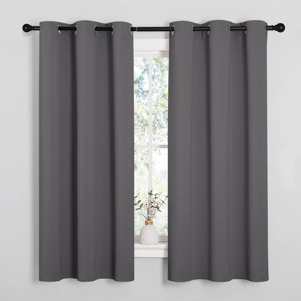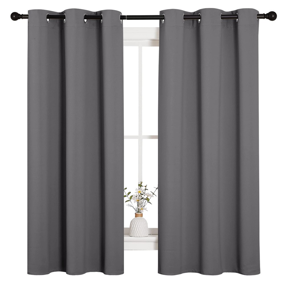 NICETOWN Thermal Insulated Grommet Blackout Curtains for Bedroom (2 Panels, W42 x L63 -Inch, Grey) NICETOWN Blackout Curtains are so much more than just bits and pieces of fabric that are sewn together to prevent sunlight from entering your home, they go beyond that mundane function and provide additional benefits that do not meet the eye instantly. Light Blocking Energy Savers. Having the heavy, multi-layered microfiber blackout window curtains or drapes can make a world of a difference in reducing the amount of light that comes in from outside, which has green-conscious consumers excited about investing them as energy-efficient window treatments. A home insulated and remains warmer in wintertime relieves the strain on home heating and reduces 25 percent energy budget at most. Sleep Soother n Noise Buffer. It's hard to get babies to take a rest during the day when the sun is streaming brightly through a bedroom window. Blackout curtains encourage the best possible sleep and most comfortable setting for day sleepers and the ones who have trouble falling asleep, by automatically darkening and lowering noise levels. Absolute Privacy n Relax. Not only that but also make your resting zone truly blissful. They would be perfect for any home theater and supply you with the enjoyment of watching TV in real darkness. If you are looking for great and cost-effective ways of re-inventing the look of your home, NICETOWN readymade curtains would be the game changer in your shopping cart. They are crafted for the topmost and luxury, coming with the strong grommet ring top for easy installation and smooth sliding over a rod. Each curtain panel is carefully ironed and ready to serve as your window dressing. What color do you like? MORE BENEFITS READY MADE: Set includes 2 BLACKOUT CURTAINS PANELS of 42" wide x 63" length with 6 grommets top each. Quality fabric without liner feels soft and heavy. SERVE WELL: Curtains impede 85%-99% light and UV rays(Dark color curtains work well). Noise-reducing, better TV viewing thanks to the innovative triple weave technology. ENERGY SMART: Triple weave blackout fabric balances room temperature by insulating against summer heat and winter chill. Protect your furniture, floors, and artwork from the ravages of the sun, the drapes will pay for themselves off over time. GOOD TO GO: Thread trimmed and wrinkle-free, ring (1.6-inch inner diameter) fits easily with standard curtain rods. All sets for you to put them up right away. EASY TO MAINTAIN: NICETOWN blackout curtains are made to last. Machine washable in cold water, tumble dry. Quick ironing or steam clean when needed. Visiting the NICETOWN store, find out your favorite curtains.