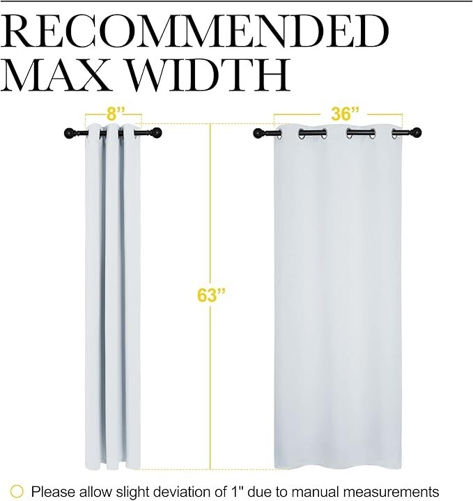 The NICETOWN Thermal Insulated Grommet Room Darkening Curtains in Light Gray are stylish and modern panels perfect for any room in your home. Made of lightweight polyester material, these curtains feature a solid pattern with a sleek grommet heading for easy hanging. With a black-out transparency, these curtains provide privacy while still allowing some light to filter through, creating a cozy ambiance in your space. At 63 inches long and 36 inches wide, they are versatile and lightweight, making them a practical and stylish addition to your home decor. Used over windows in an Arizona home in the heat of the summer. Works great to keep the heat out and cool in. Keeps room dark and cool. includes 2 panels Item description Combined payment and shipping on multiple item orders delivered to same address are accepted Orders ship within 1 - 2 business days once payment is received All orders ship with USPS Ground Advantage or Priority Mail (dependent on package size) Not every offer will be accepted but all offers will be considered. Item sold "As Is" and no returns accepted Check out my other listings for more great deals!