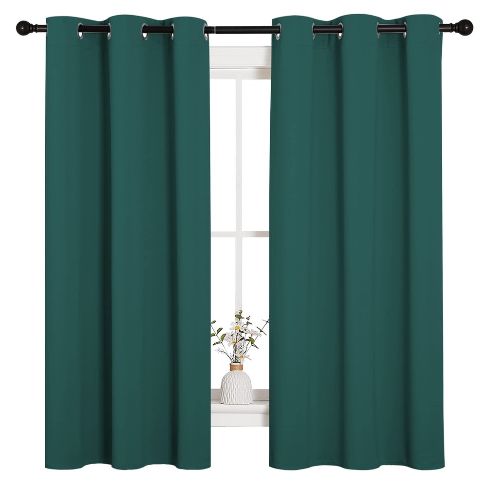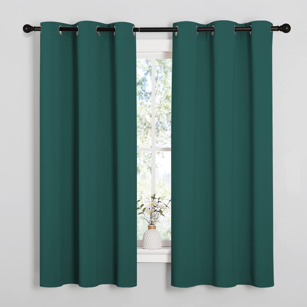 NICETOWN Thermal Insulated Solid Grommet Blackout Curtains/Drapes/Panels for Dining Room (Hunter Green, 1 Pair, 42 by 63-Inch) Description Features: Polyester READY MADE: Set includes 2 BLACKOUT CURTAINS PANELS of 42" wide x 63" length with 6 grommets top each. Quality fabric without liner feels soft and heavy. SERVE WELL: Curtains impede 85%-99% light and UV rays(Dark color curtains work well). Noise-reducing, better TV viewing thanks to the innovative triple weave technology. ENERGY SMART: Triple weave blackout fabric balances room temperature by insulating against summer heat and winter chill. Protect your furniture, floors, and artwork from the ravages of the sun, the drapes will pay for themselves off over time. GOOD TO GO: Thread trimmed and wrinkle-free, ring (1.6-inch inner diameter) fits easily with standard curtain rods. All sets for you to put them up right away. EASY TO MAINTAIN: NICETOWN blackout curtains are made to last. Machine washable in cold water, tumble dry. Quick ironing or steam clean when needed. Visiting the NICETOWN store, find out your favorite curtains. Product Details: Brand: NICETOWN Color: Hunter Green Material: Polyester, Polyester Blend Product Dimensions: 63"L x 42"W Opacity: Blackout Inches Brand: NICETOWN Color: Hunter Green Material: Polyester, Polyester Blend Product Dimensions: 63"L x 42"W Opacity: Blackout Inches Special Feature: Thermal Insulated, Soundproof, Wrinkle Free, Blackout Room Type: Kitchen, Conference Room, Living Room, Home Office, Dining Room Style: Modern Pattern: Solid Theme: Art Curtain Form: Drapes Top Style: Grommet Size: 42 in x 63 in (W x L) Included Components: Curtain Panels Seasons: Summer Closure Type: Grommet Number of Items: 2 Product Care Instructions: Machine Wash Package Weight: 0.96 Kilograms Fabric Type: Polyester Model Name: NTGMBLKSLD2-42ALL3 UPC: 787966629918 Manufacturer: NICETOWN Item Weight: 2.12 pounds Country of Origin: China Item model number: VCNTGMBLKSLD2-4263C27 Perfume: Unscented Assembly required: No Number of pieces: 2 Batteries required: No Shipping Free fast shipping Return Policy All items qualify for returns within 30 days of receipt.