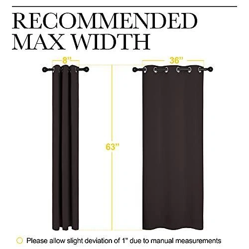 NICETOWN Triple Weave Microfiber Energy Saving Thermal Insulated Solid Grommet Features READY MADE: Set includes 2 BLACKOUT CURTAINS PANELS of 42" wide x 63" length with 6 grommets top each. Quality fabric without liner feels soft and heavy. SERVE WELL: Curtains impede 85%-99% light and UV rays(Dark color curtains work well). Noise-reducing, better TV viewing thanks to the innovative triple weave technology. ENERGY SMART: Triple weave blackout fabric balances room temperature by insulating against summer heat and winter chill. Protect your furniture, floors, and artwork from the ravages of the sun, the drapes will pay for themselves off over time. EASY TO MAINTAIN: NICETOWN blackout curtains are made to last. Machine washable in cold water, tumble dry. Quick ironing or steam clean when needed. Visiting the NICETOWN store, find out your favorite curtains. Description NICETOWN Blackout Curtains are so much more than just bits and pieces of fabric that are sewn together to prevent sunlight from entering your home, they go beyond that mundane function and provide additional benefits that do not meet the eye instantly. Light Blocking Energy Savers. Having the heavy, multi-layered microfiber blackout window curtains or drapes can make a world of a difference in reducing the amount of light that comes in from outside, which has green-conscious consumers excited about investing them as energy-efficient window treatments. A home insulated and remains warmer in wintertime relieves the strain on home heating and reduces 25 percent energy budget at most. Sleep Soother n Noise Buffer. It's hard to get babies to take a rest during the day when the sun is streaming brightly through a bedroom window. Blackout curtains encourage the best possible sleep and most comfortable setting for day sleepers and the ones who have trouble falling asleep, by automatically darkening and lowering noise levels. Absolute Privacy n Relax. Not only that but also make your resting zone truly blissful. They would be perfect for any home theater and supply you with the enjoyment of watching TV in real darkness. If you are looking for great and cost-effective ways of re-inventing the look of your home, NICETOWN readymade curtains would be the game changer in your shopping cart. They are crafted for the topmost and luxury, coming with the strong grommet ring top for easy installation and smooth sliding over a rod. Each curtain panel is carefully ironed and ready to serve as your window dressing. What color do you like? About Us We are uniquely positioned to offer the best prices on thousands of America's most popular items. No matter where your shopping journey takes you, our mission is to bring product expertise and quality items at prices you can’t find anywhere else. Shipping Standard Delivery Standard orders are processed once payment method authorization and verification have been obtained. Orders shipped via standard delivery will typically ship within 1-2 business after receiving payment method authorization. Returns 30-Day Free Returns and Money Back Guarantee Return Policy If you are not satisfied with your purchase for any reason, please return your item in its original, unused condition (including all original packaging and tags) within 30 days for a full refund. We offer free returns for all items within 30 days of your purchase. To make a return, you must obtain a return authorization number (RA#) by contacting us at via eBay Messages. You will be notified by email to your registered email address on eBay and to eBay Messages within 48 hours with your RA#. You should expect to receive your refund within 6 Business Days upon verified and tracked receipt of your return package; however, in most cases you will receive a refund more quickly. Contact Us We are committed to providing our customers with the best possible online shopping experience. If we've fallen short in any way, or if there's anything we can do to assist or improve your shopping experience with us, we want to know! Please reach out to us by messaging us through the eBay messaging portal. We'd love to hear from you! Payment Immediate payment is required upon selecting "Buy It Now" or upon checking out through the cart. We accept payment via PayPal, credit card, or PayPal Credit.